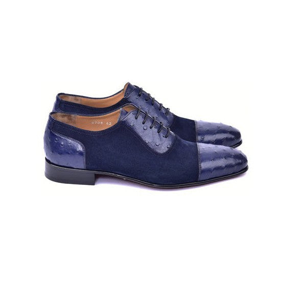 • Corrente C00015-6708 Men's Shoes Navy Ostrich Skin & Suede Leather Oxfords (CRT1487)