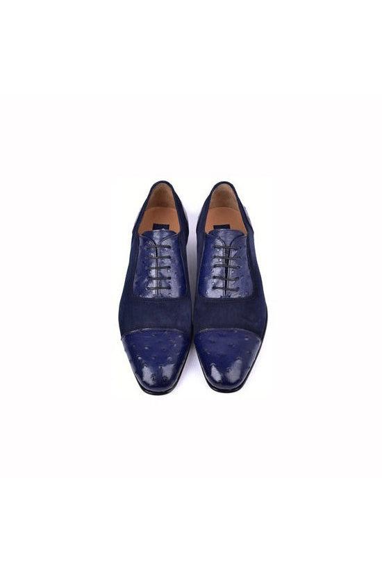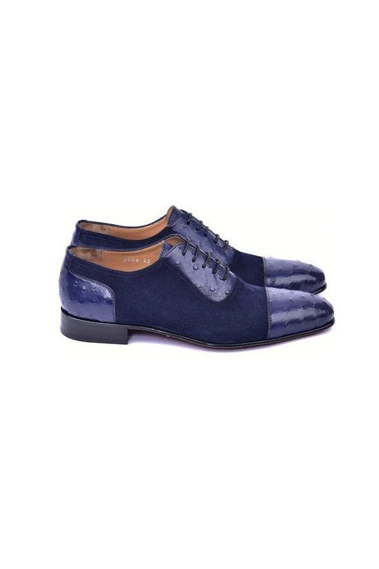 • Corrente C00015-6708 Men's Shoes Navy Ostrich Skin & Suede Leather Oxfords (CRT1487)