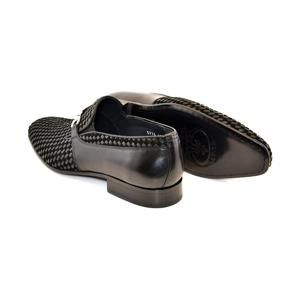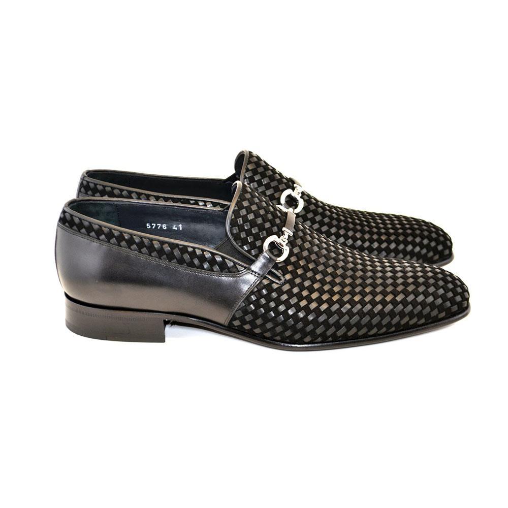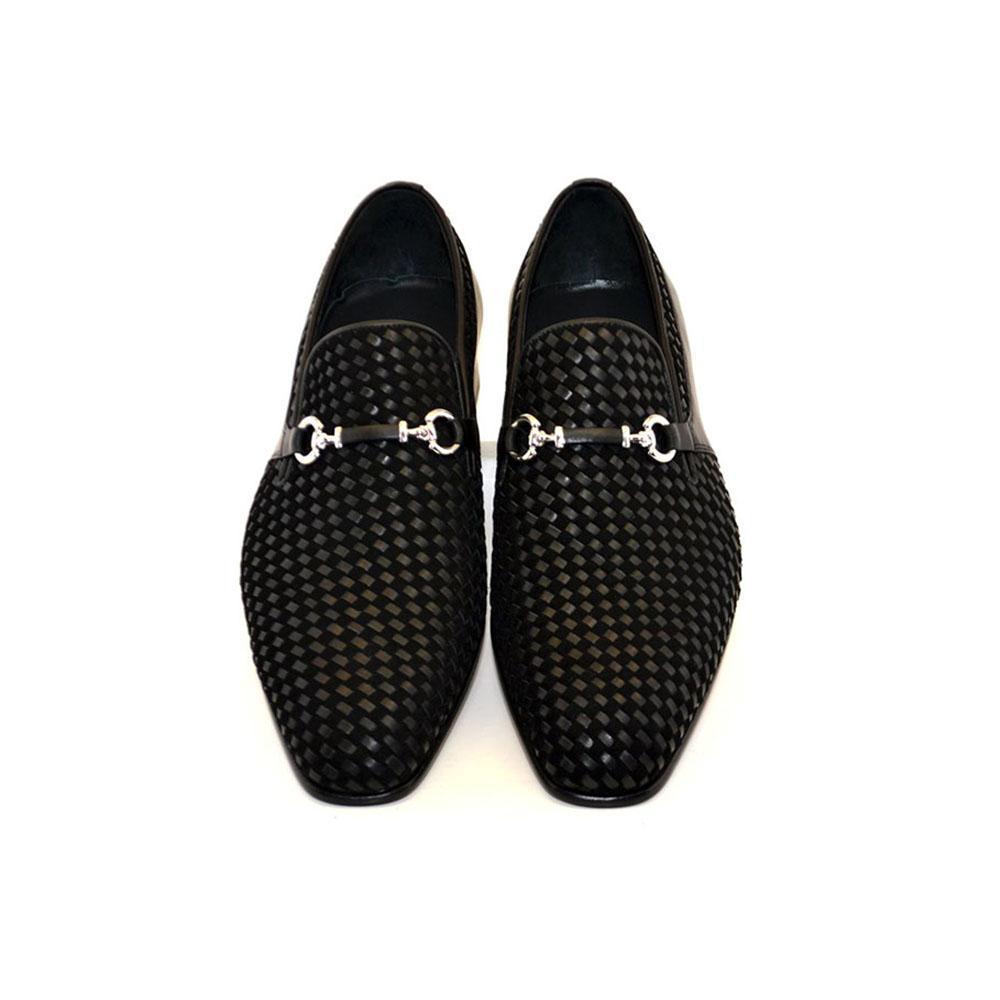 Corrente C022-5776 Men's Shoes Black Woven / Suede / Calf-Skin Leather Horsebit Loafers (CRT1216)