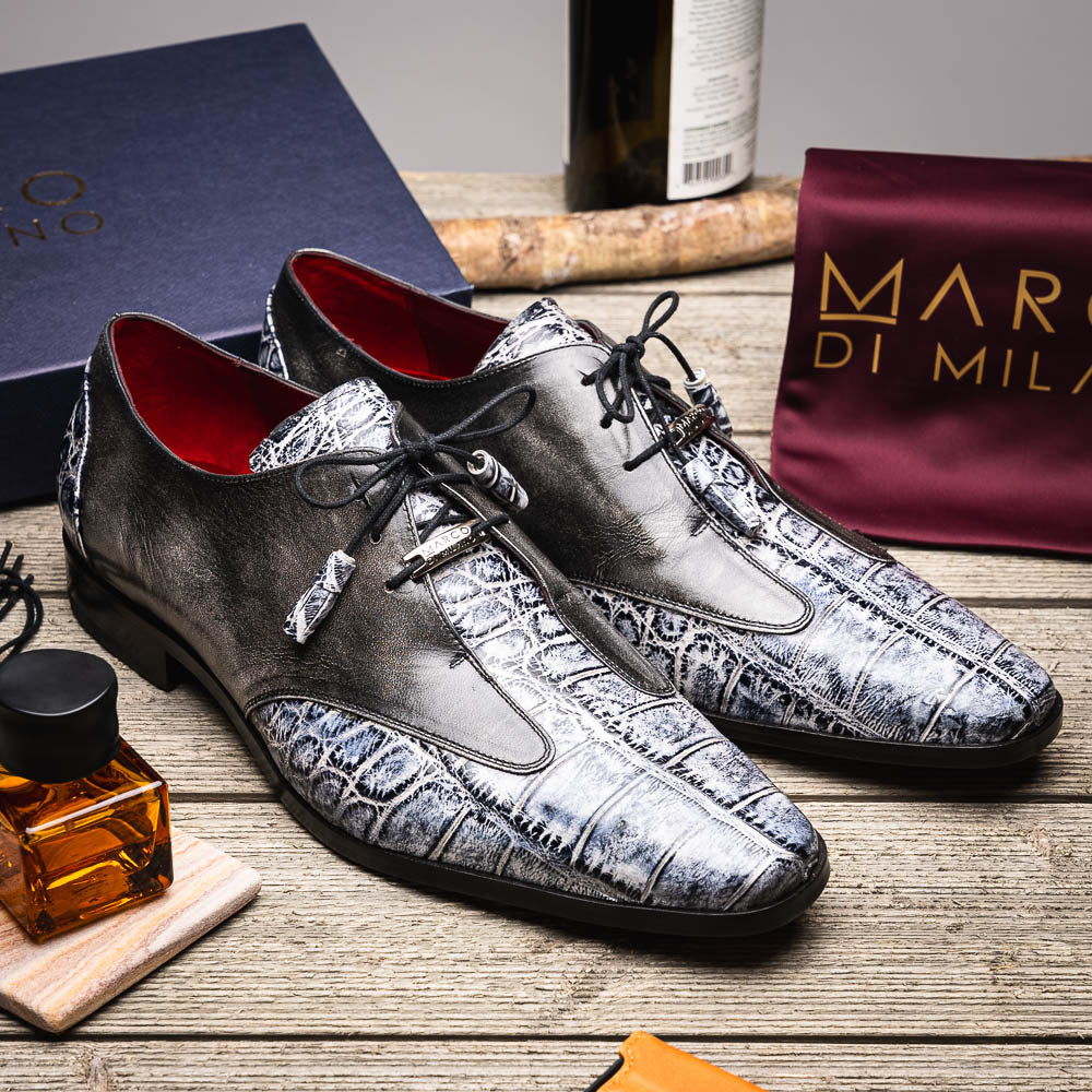 • Marco Di Milano Anzio Newspaper & Gray Exotic Alligator / Calfskin Leather Derby (MDM1037)