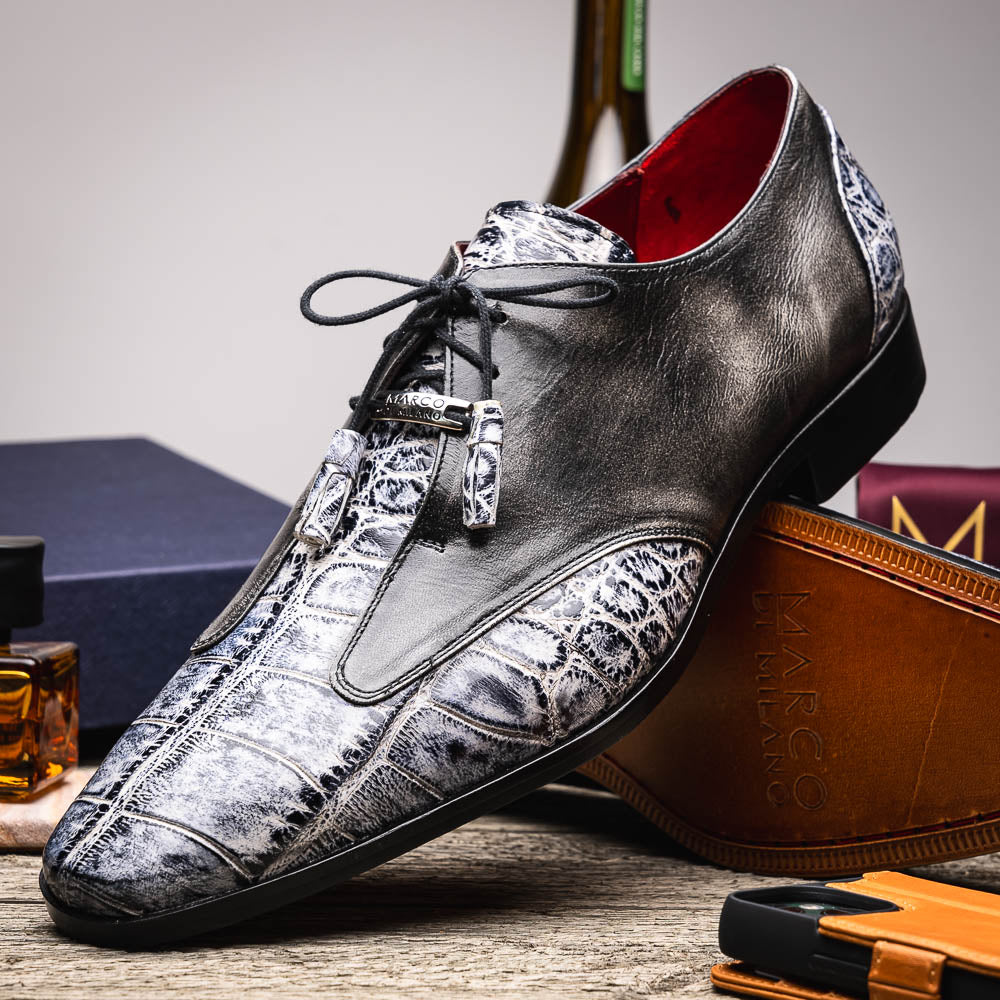 Marco Di Milano Anzio Newspaper & Gray Exotic Alligator / Calfskin Leather Derby (MDM1037)