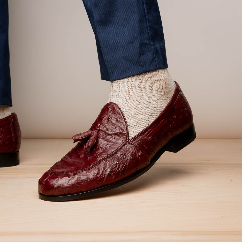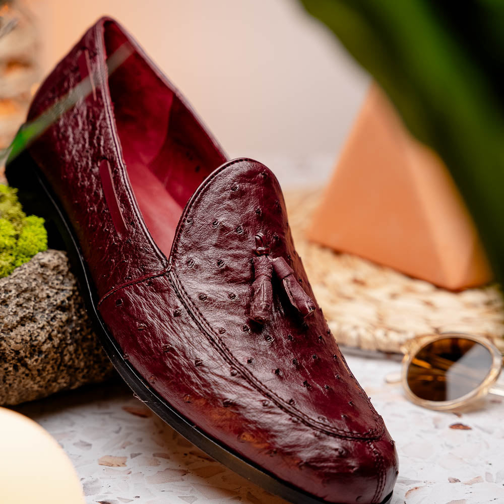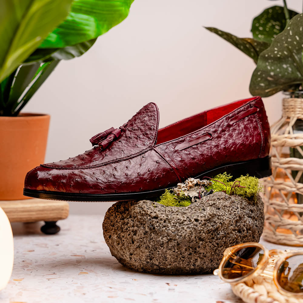 • Marco Di Milano Aubiere Men's Shoes Exotic Wine Ostrich Tassels Loafers (MDM1198)
