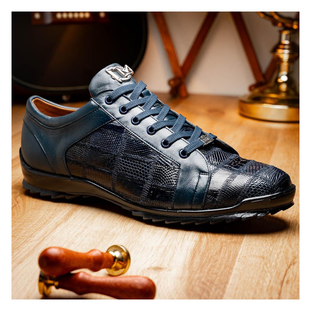 Introducing the BARI, our sporty genuine lizard fashion sneaker with a unique patchwork design and eye-catching rubber sole. Crafted with hand-painted genuine lizard leather, these sneakers offer both style and comfort. Whether dressing up with slacks for a sporty look or pairing them with jeans or shorts for a casual vibe, the BARI is the perfect choice for a clean and stylish ensemble.