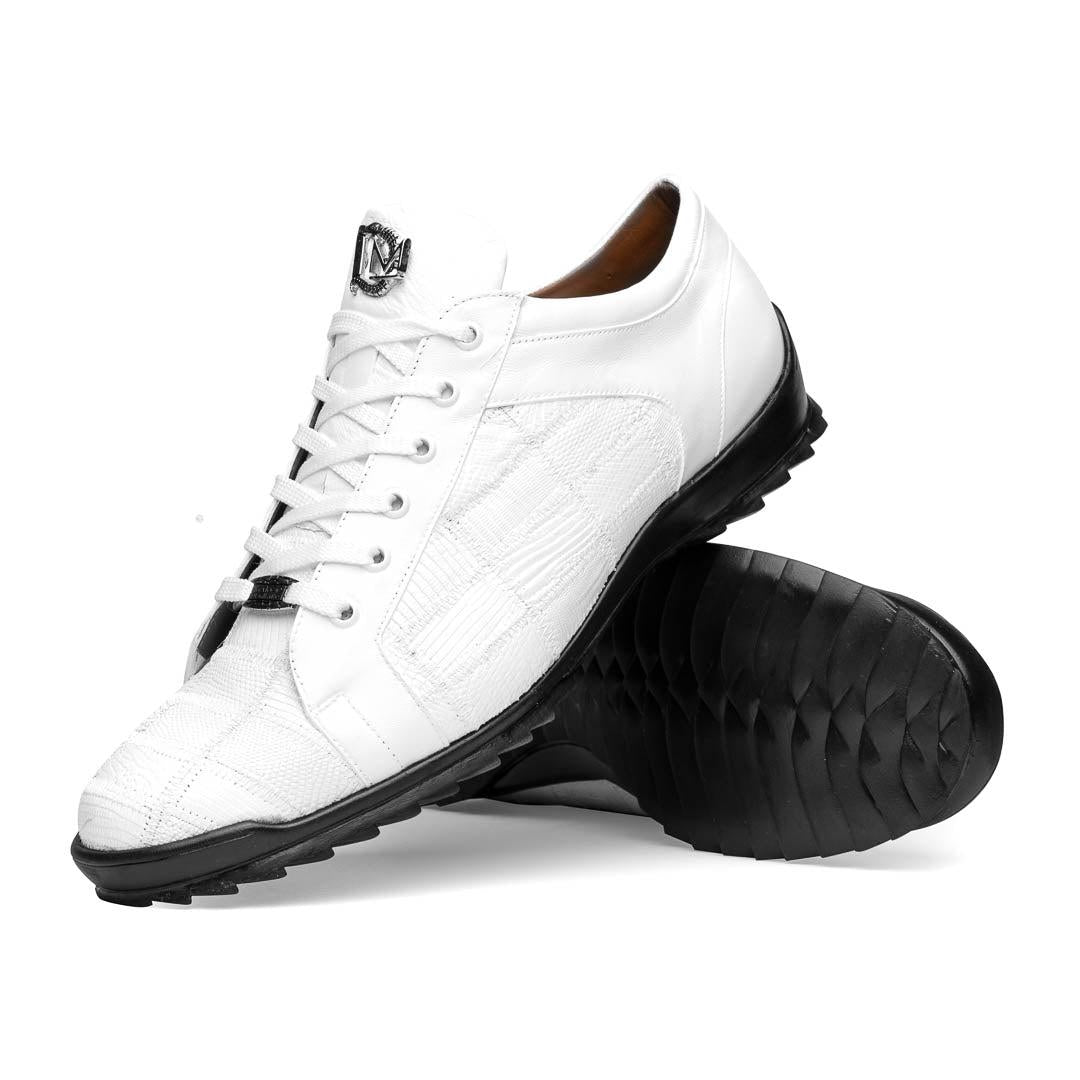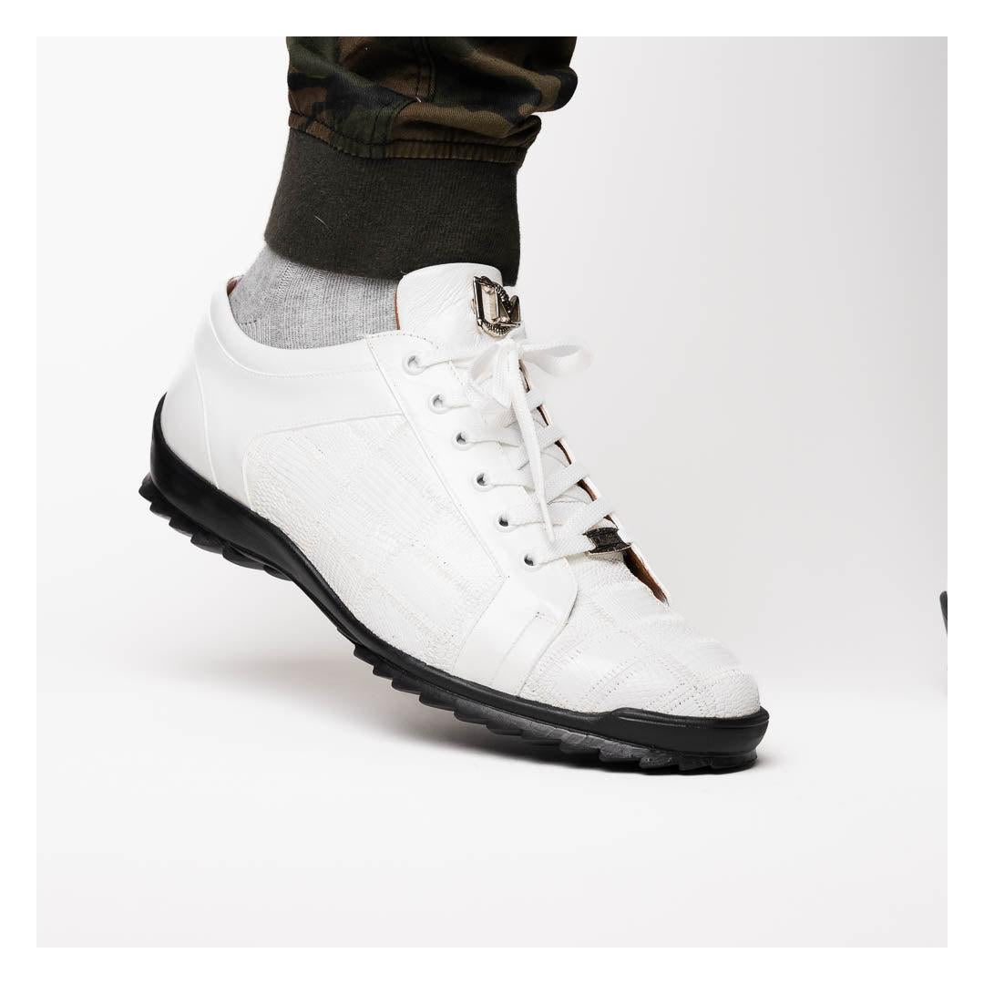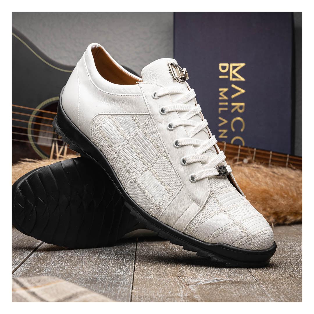 Marco Di Milano Bari Men's Shoes White Genuine Patchwork Lizard Skin Sneakers (MDM1142)