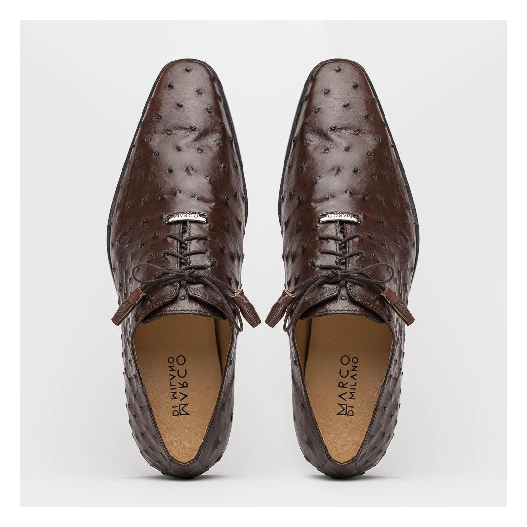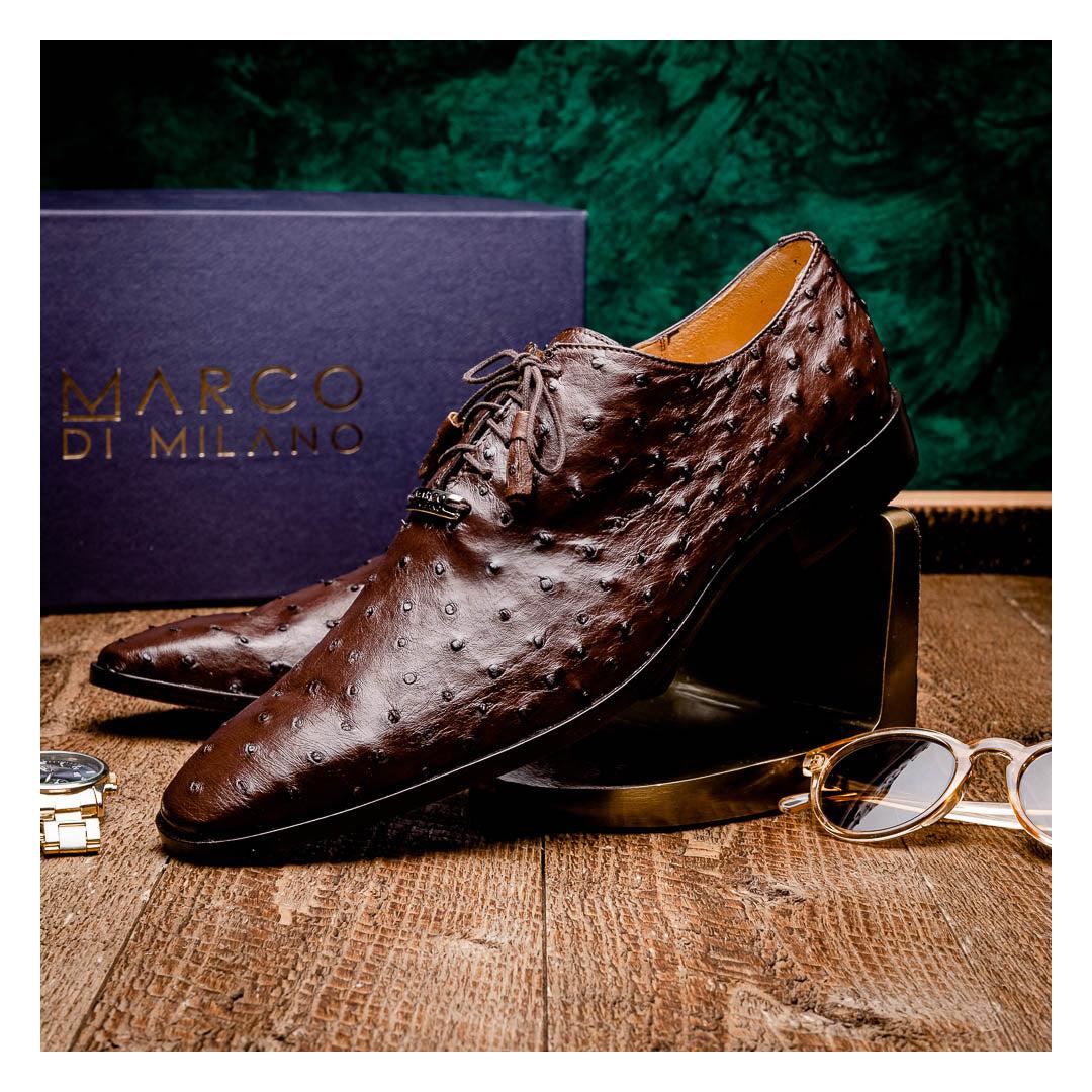 • Marco Di Milano Criss Men's Shoes Brown Exotic Ostrich Quill Dress Oxfords (MDM1073)