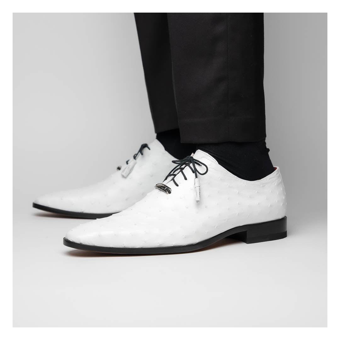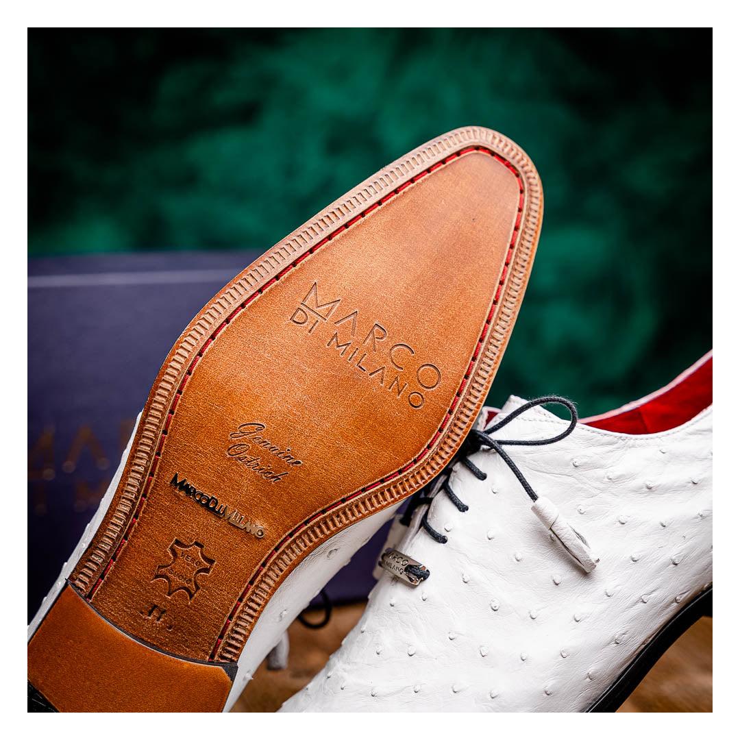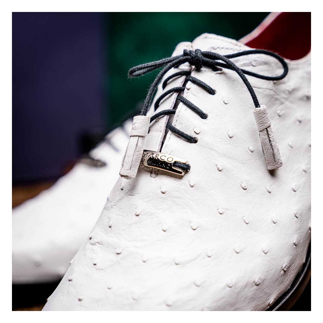 • Marco Di Milano Criss Men's Shoes White Exotic Ostrich Quill Dress Oxfords (MDM1073)