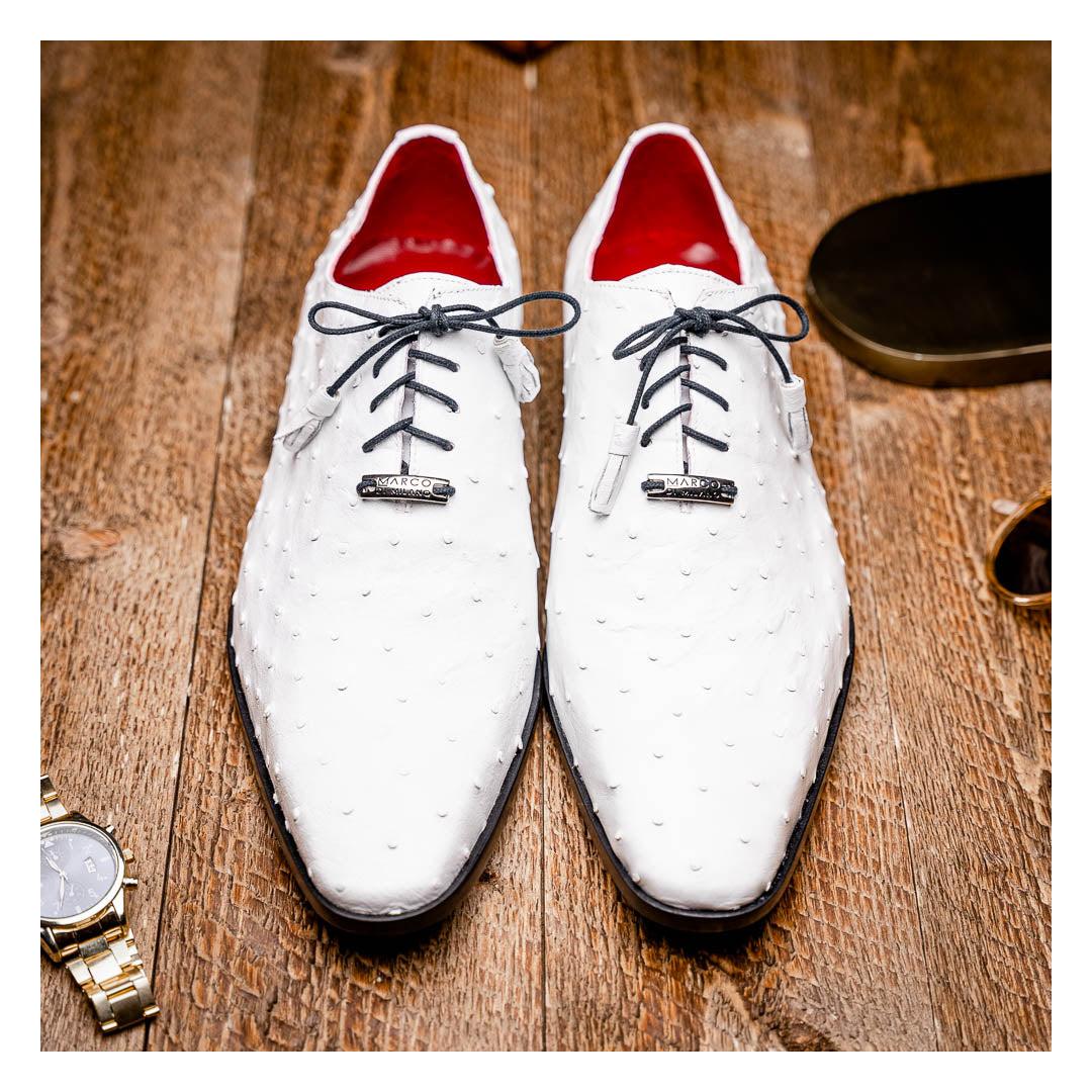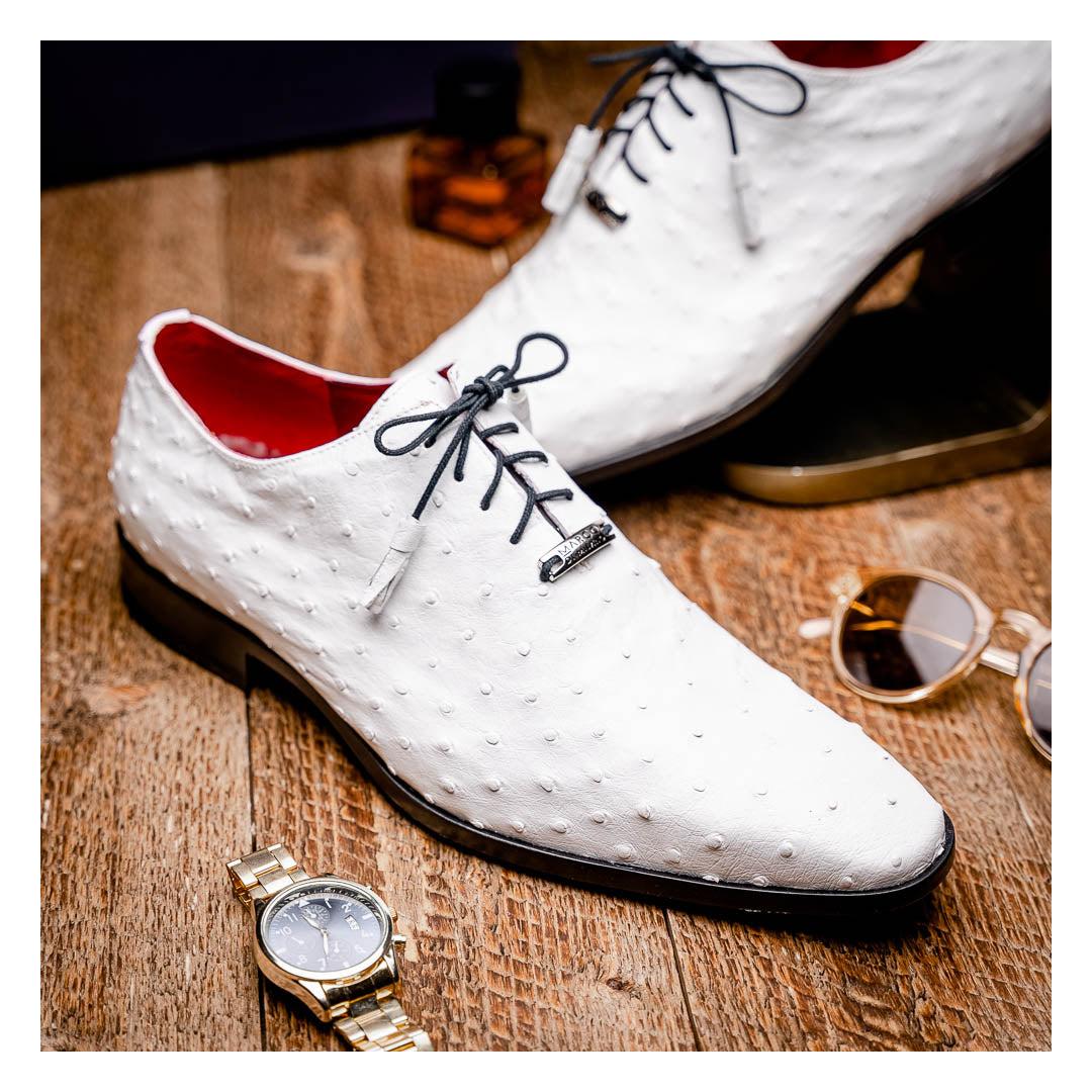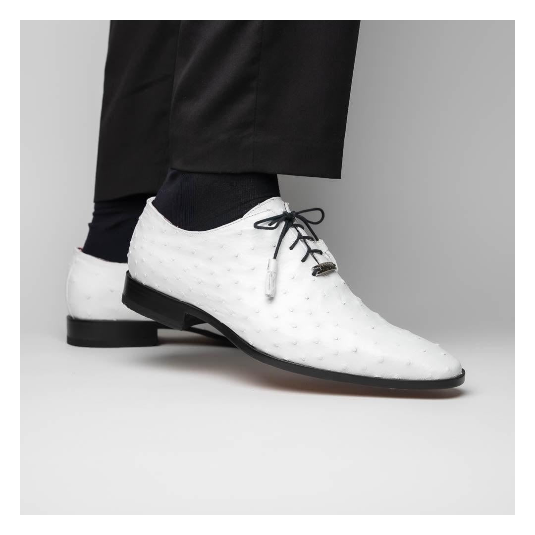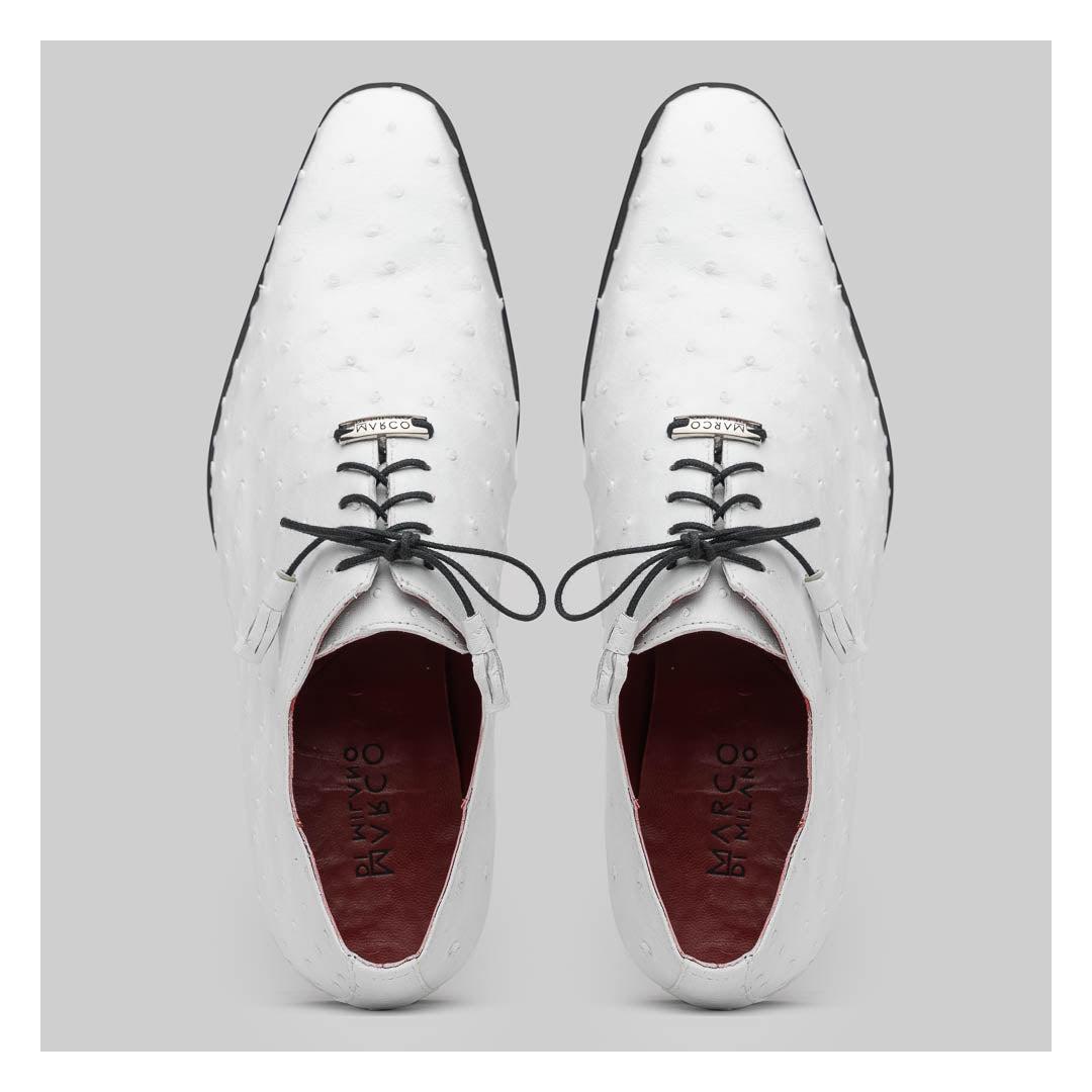 • Marco Di Milano Criss Men's Shoes White Exotic Ostrich Quill Dress Oxfords (MDM1073)