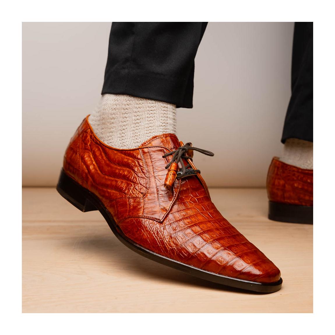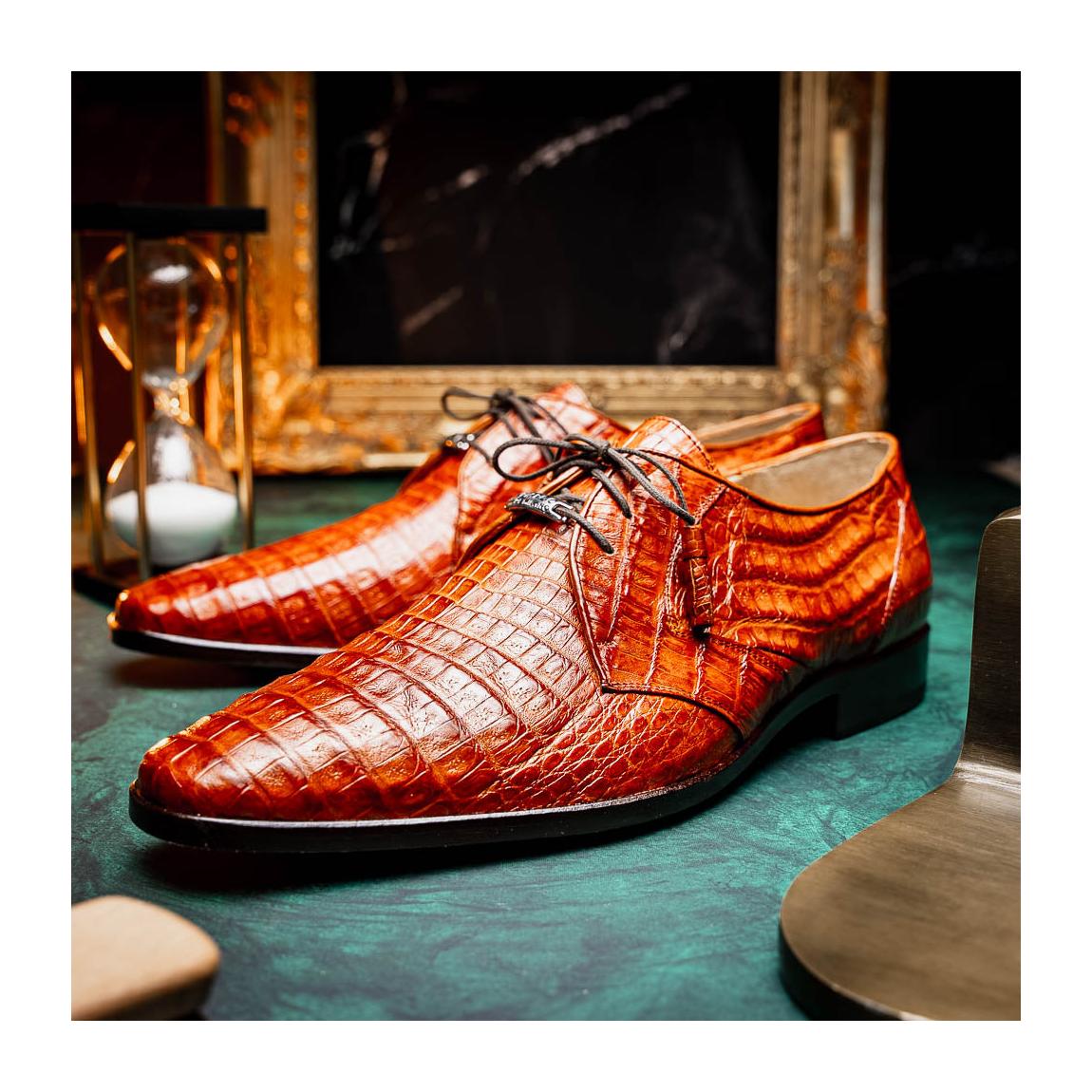 The LACIO is our fully wrapped genuine caiman crocodile dress derby's featuring tasseled laces and a polished hand finish that makes the crocodile texture pop. Dress these up with your favorite jeans or slacks for a stunning look.