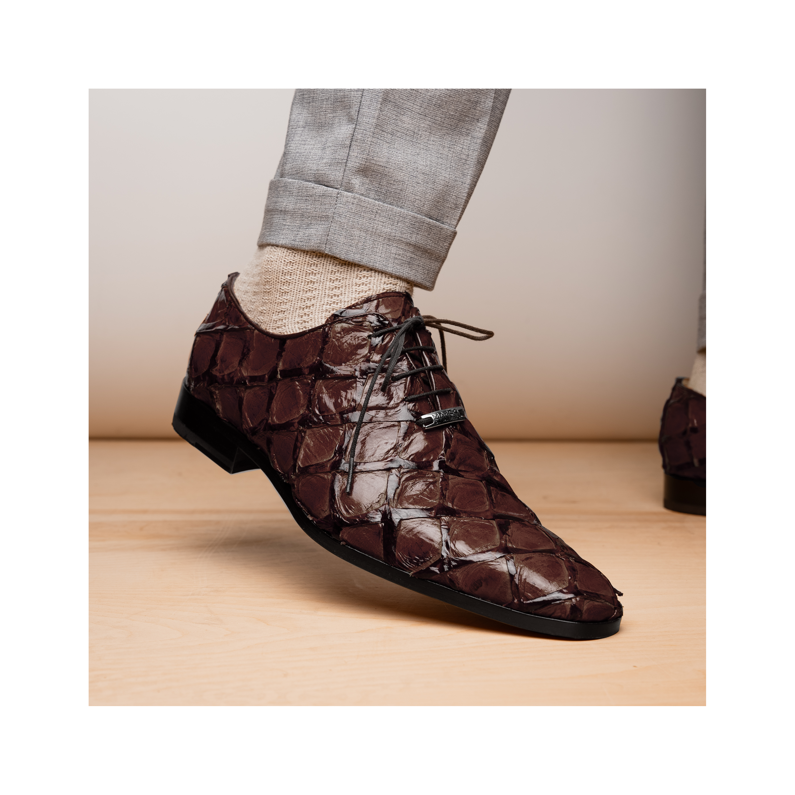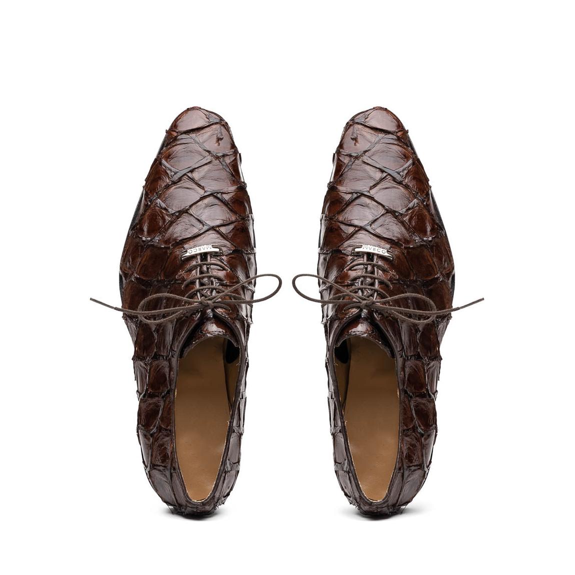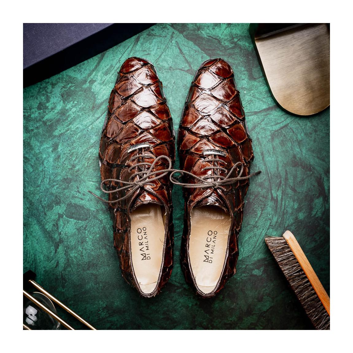 • Marco Di Milano Olivieri Men's Shoes Brown Exotic Pirarucu Leather Whole cut Oxfords (MDM1028)