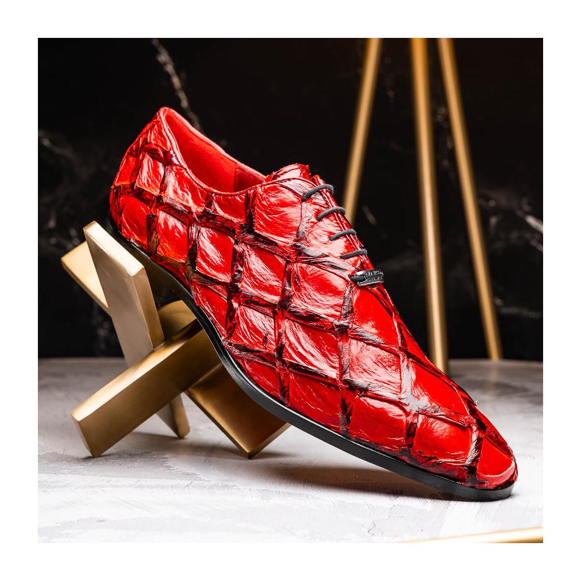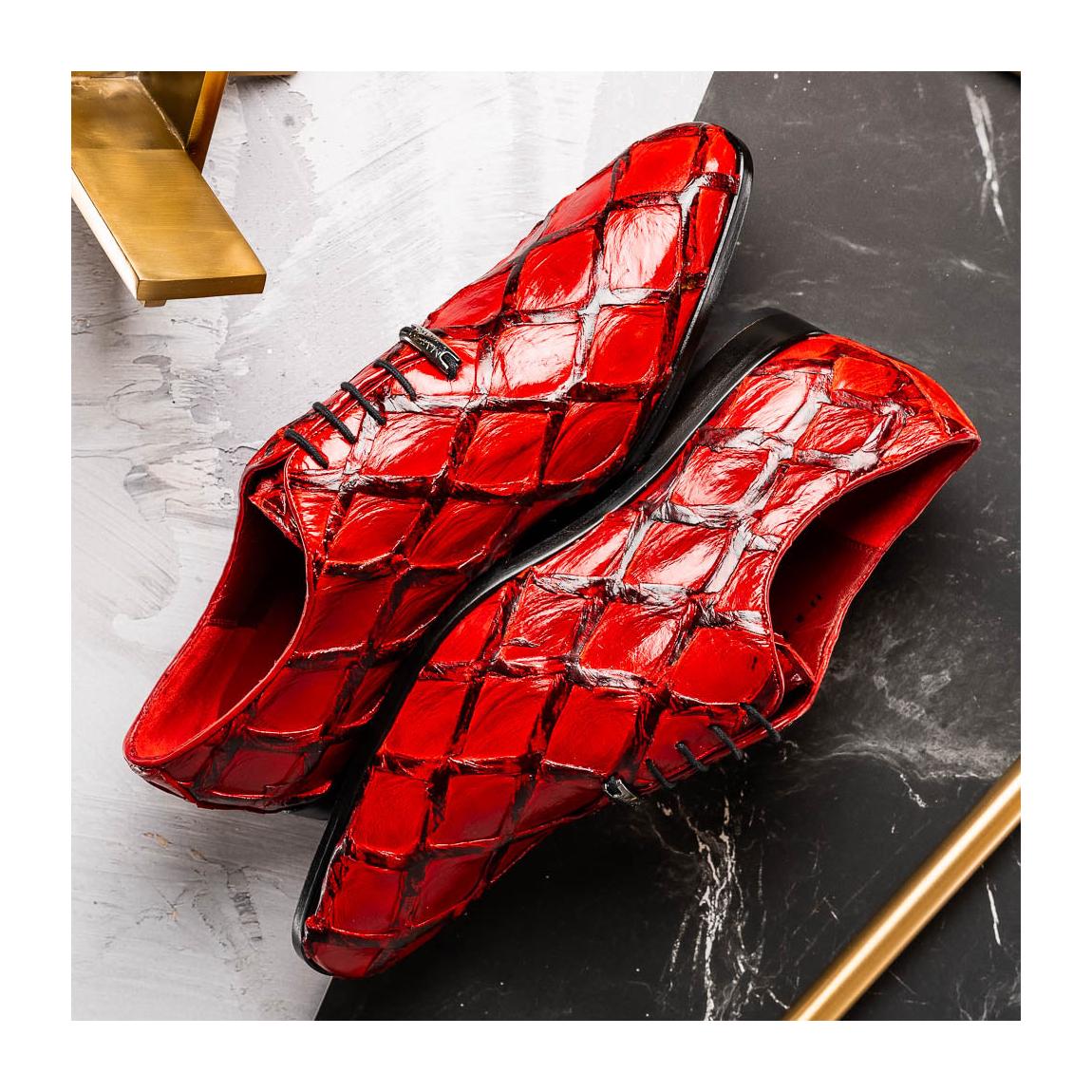 Marco Di Milano Olivieri Men's Shoes Red Exotic Pirarucu Leather Whole cut Oxfords (MDM1028)