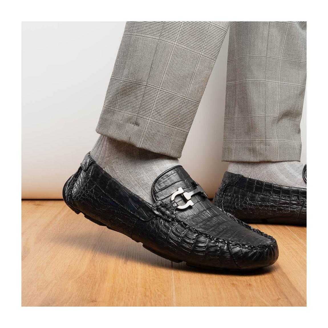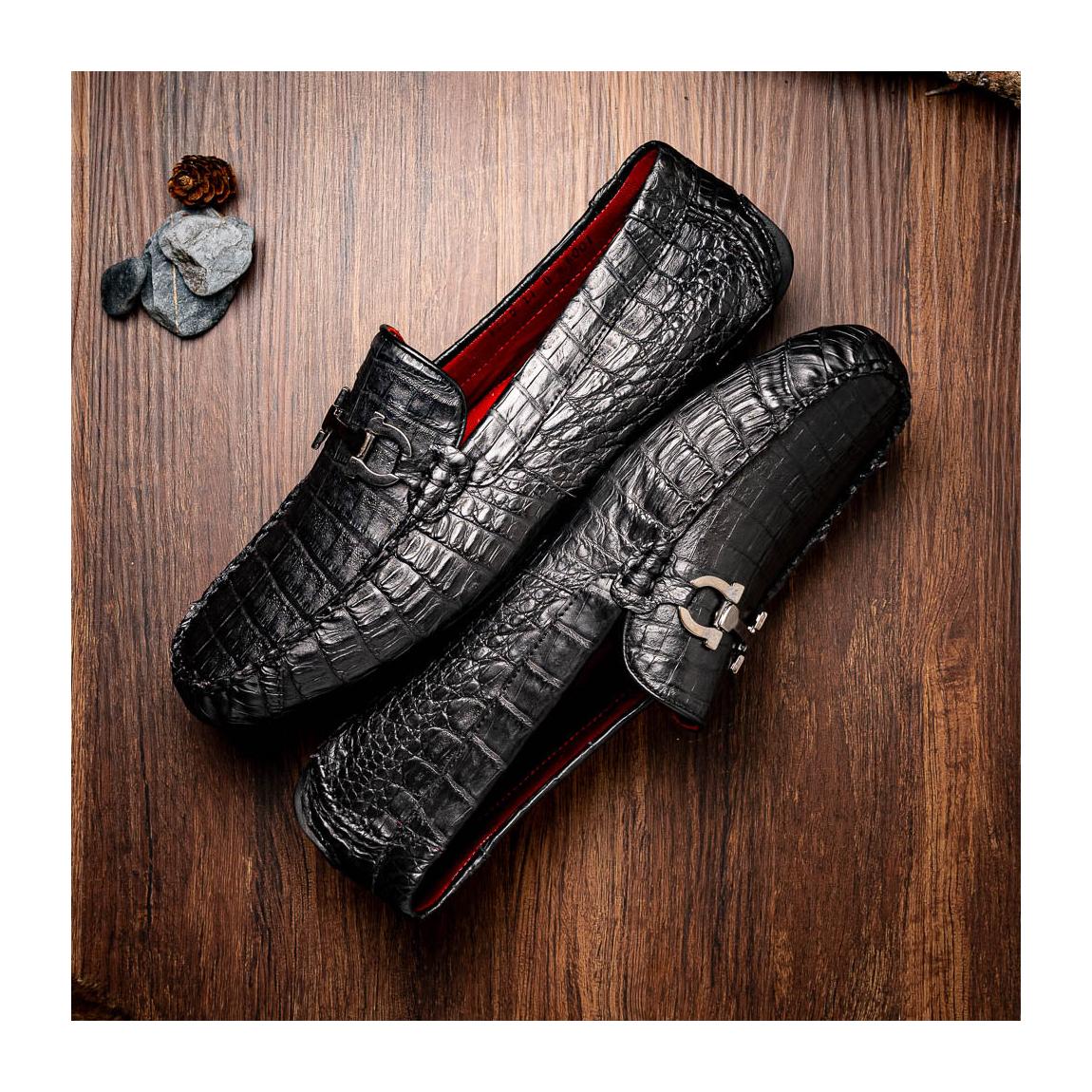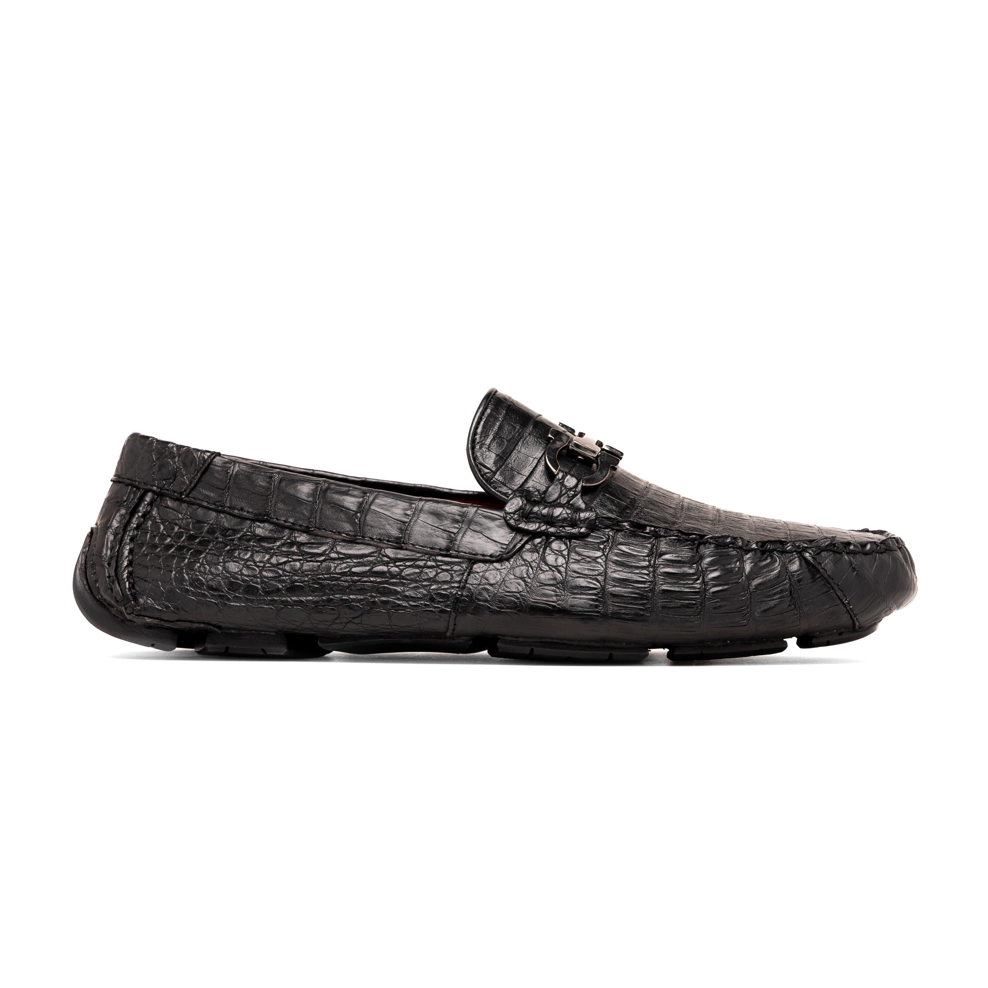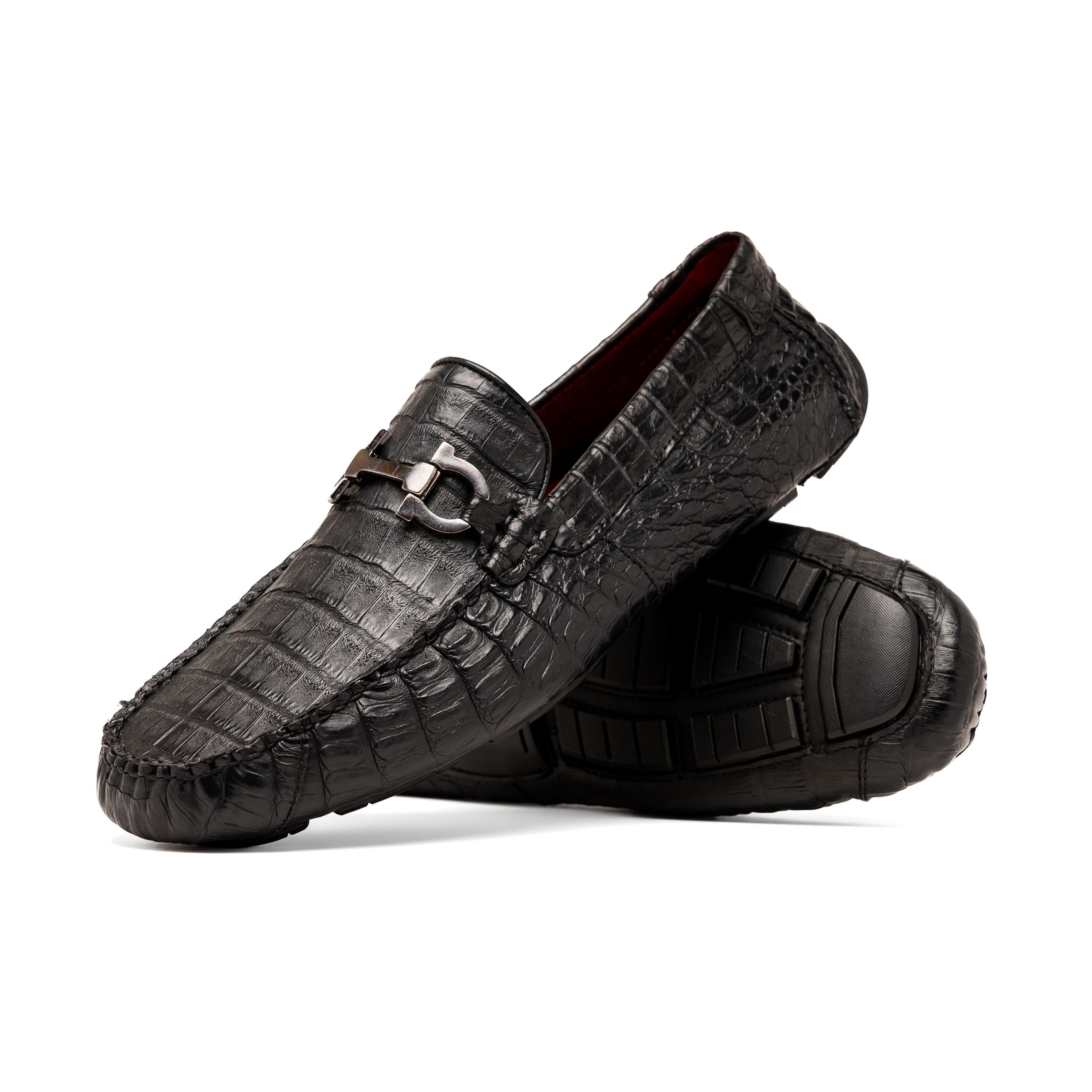 • Marco Di Milano Parma Men's Shoes Black Exotic Crocodile Moccasin Driver Horsebit Loafers (MDM1187)