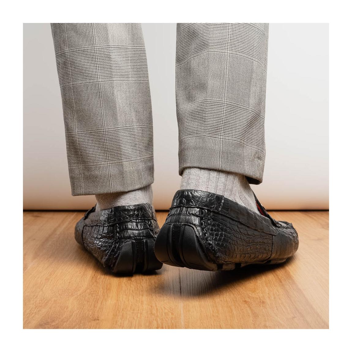 Marco Di Milano Parma Men's Shoes Black Exotic Crocodile Moccasin Driver Horsebit Loafers (MDM1187)