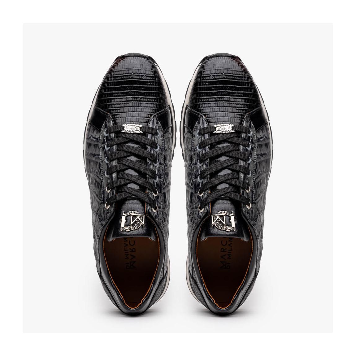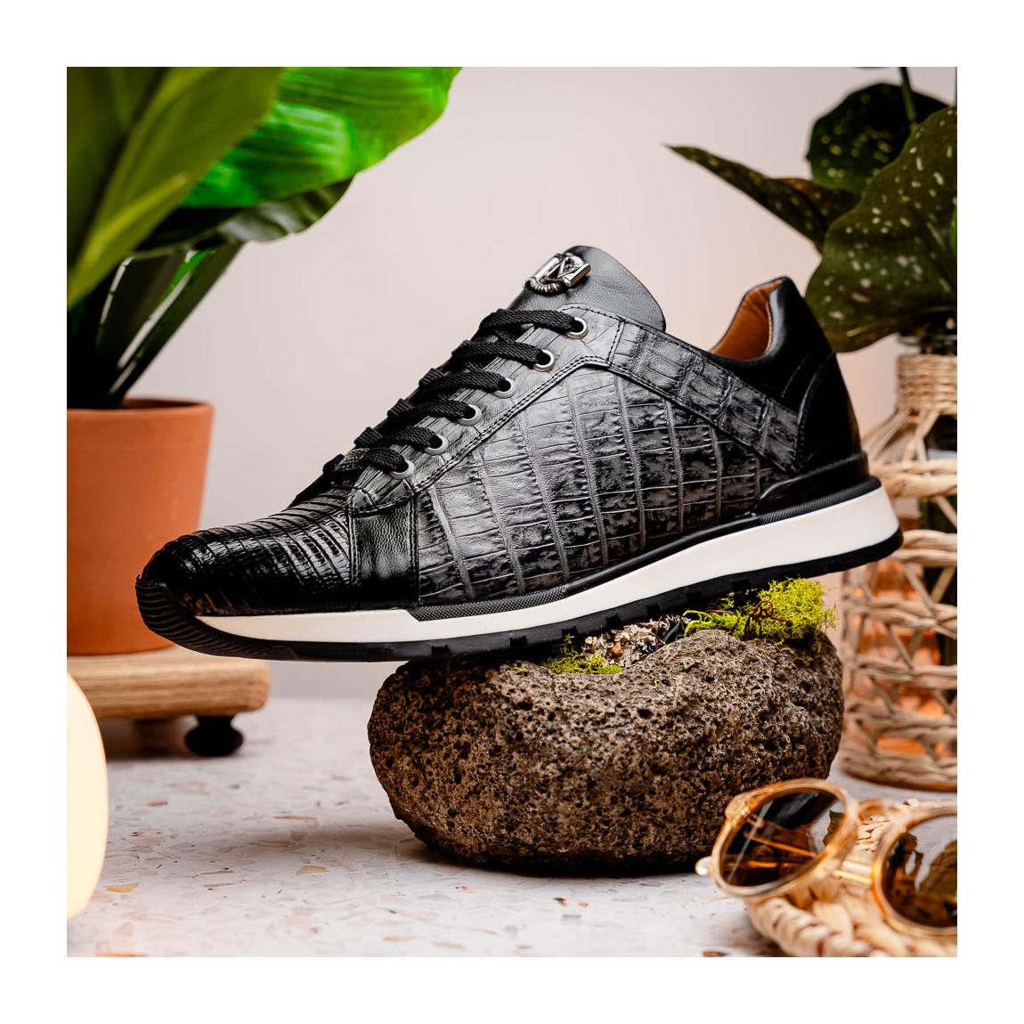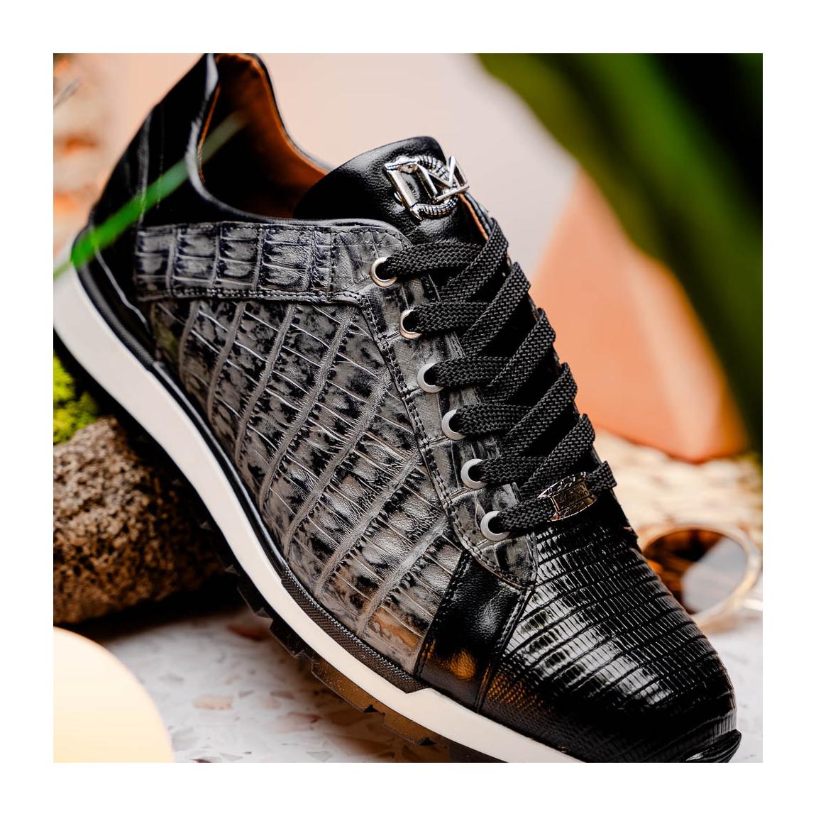 Marco Di Milano Portici Men's Shoes Gray & Black Exotic Lizard / Crocodile Casual Sneakers (MDM1016)