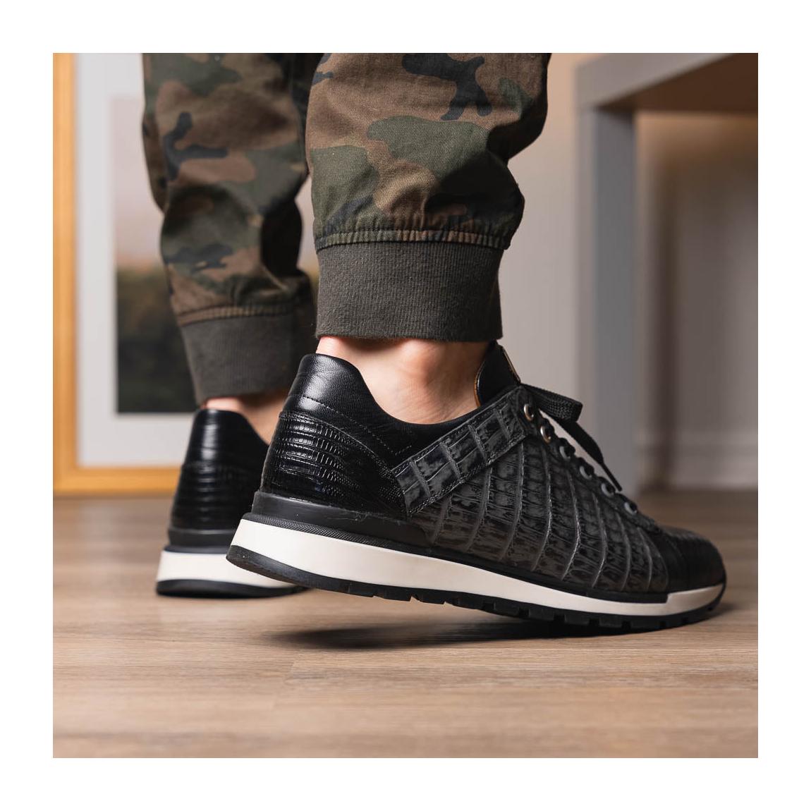 • Marco Di Milano Portici Men's Shoes Gray & Black Exotic Lizard / Crocodile Casual Sneakers (MDM1016)