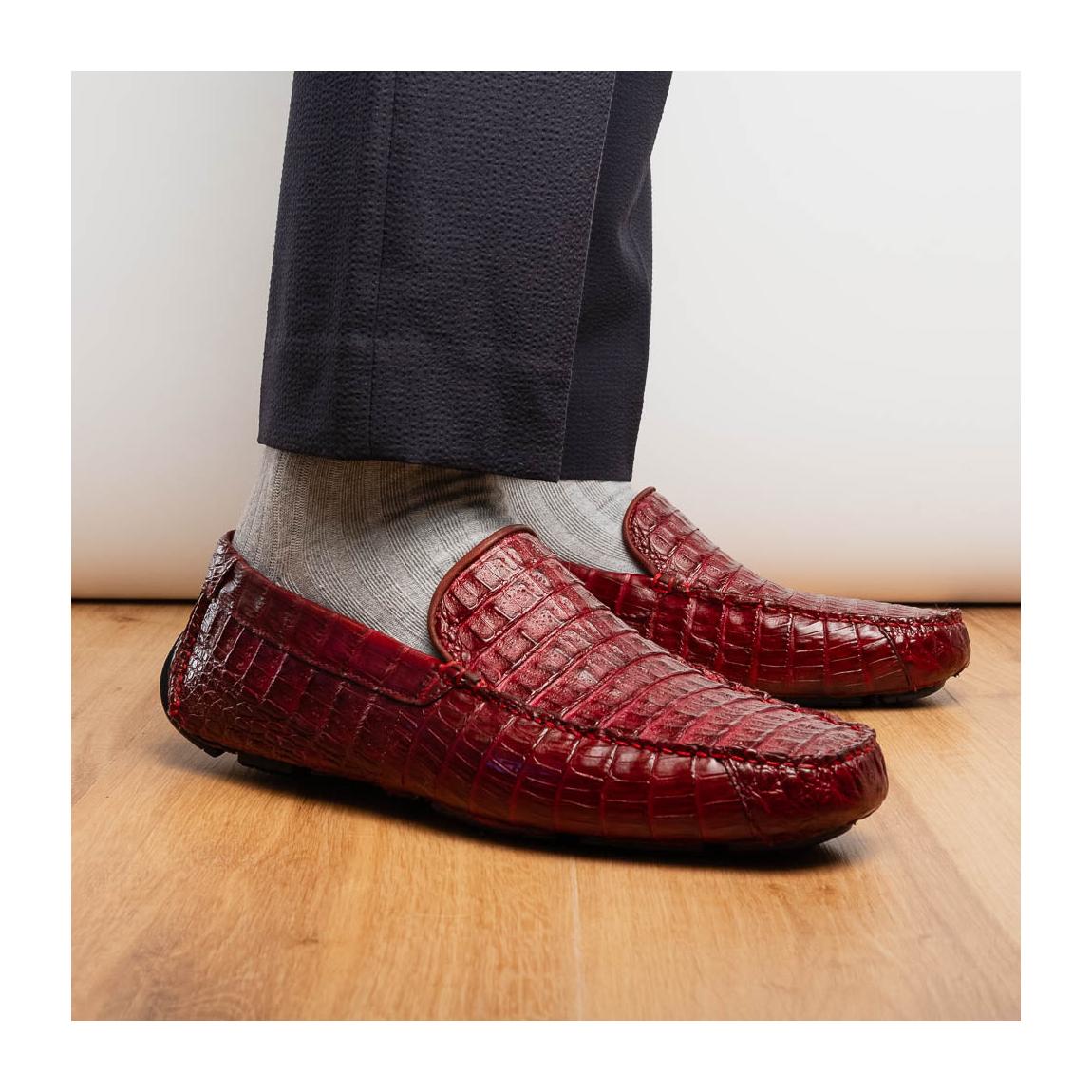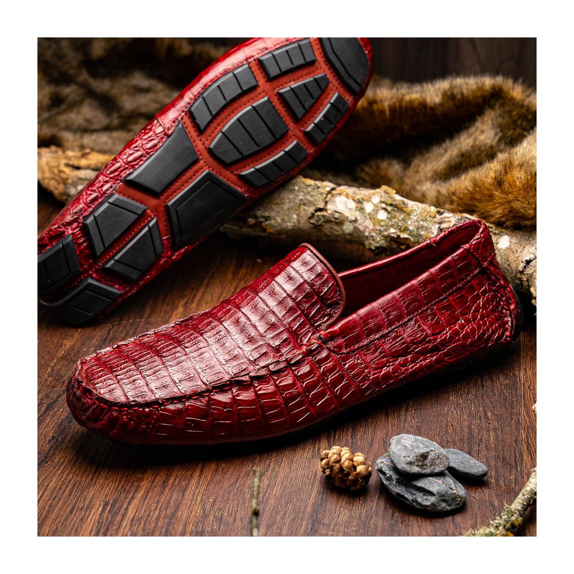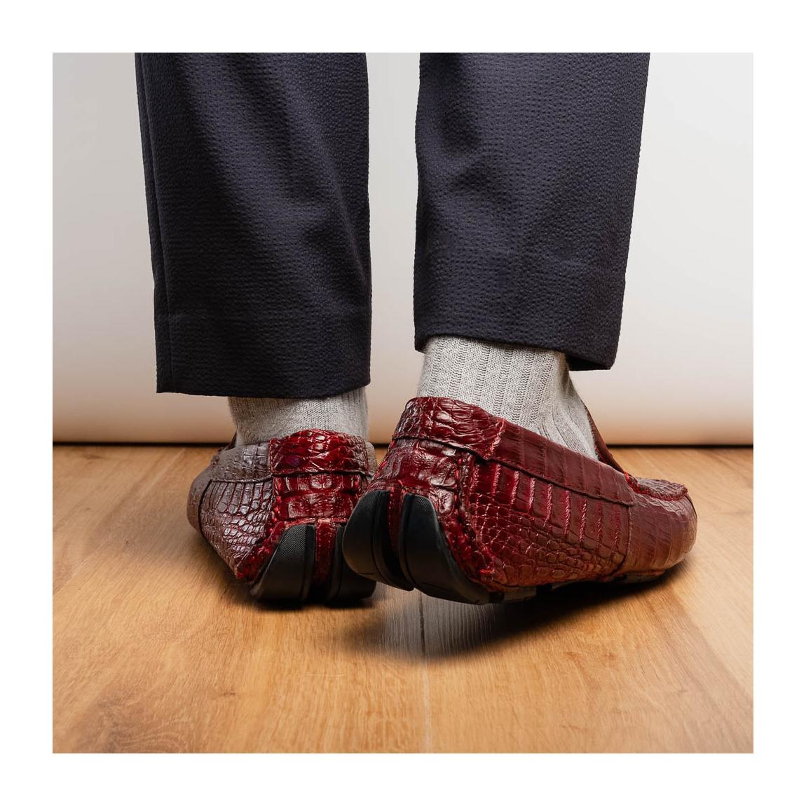 Marco Di Milano Remo Men's Shoes Wine Exotic Crocodile Moccasin Driver Loafers (MDM1188)