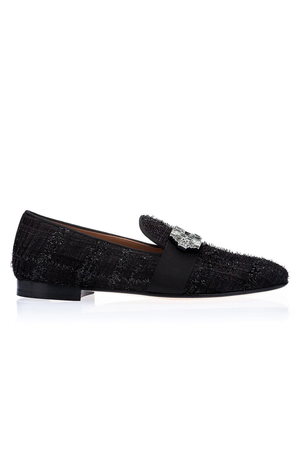 - SUPERGLAMOUROUS Coruna Alana Men's Shoes Black Boucle Slipper Loafers (SPGM1321)