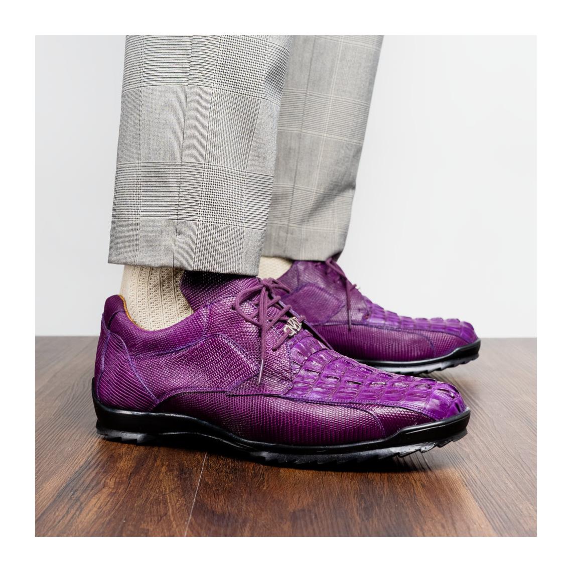 Marco Di Milano Crater Men's Shoes Purple Exotic Crocodile & Lizard Skin Sneakers (MDM1251)
