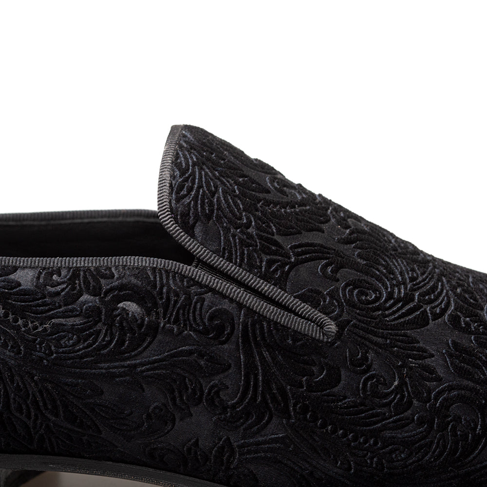 Gorgeous embossed velvet evening pump. Elegant Silhouette. Perfect fit side goring. Slide into your next red carpet adventure.