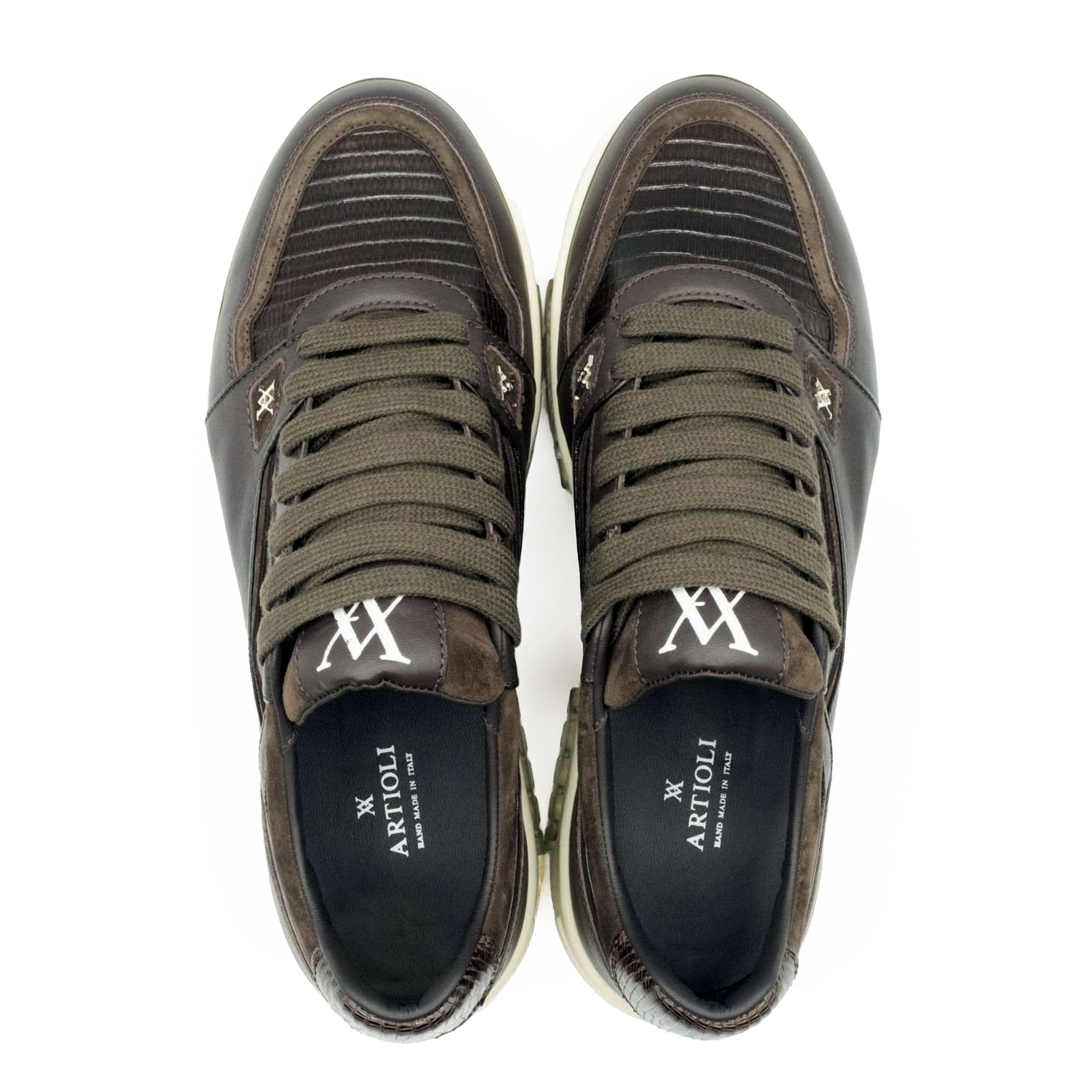 Artioli Lebron Men's Luxury Italian Shoes Lizard / Suede / Calf-Skin Leather Casual Sneaker (ART1116)