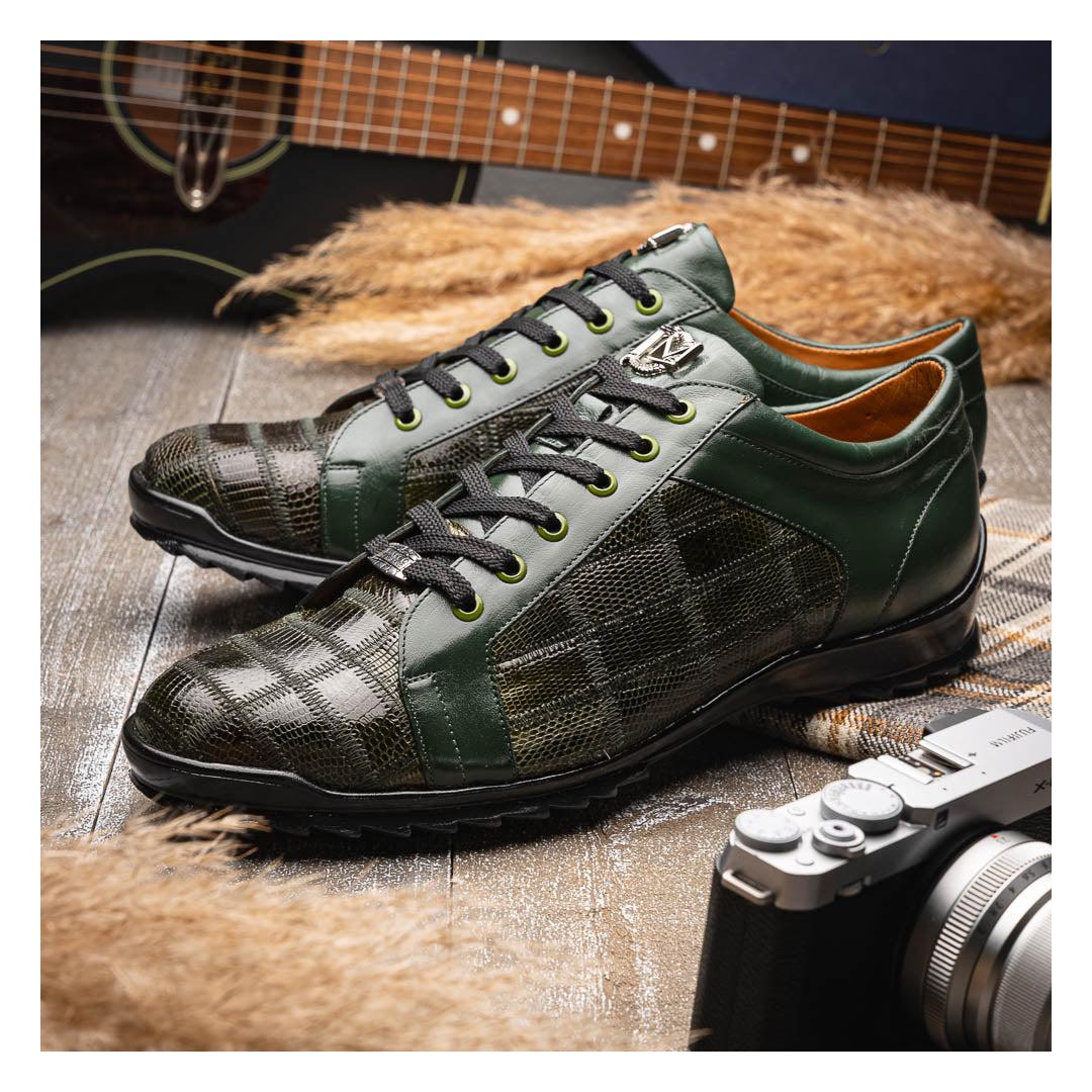 • Marco Di Milano Bari Men's Shoes Green Genuine Patchwork Lizard Skin Fashion Sneakers (MDM1142)