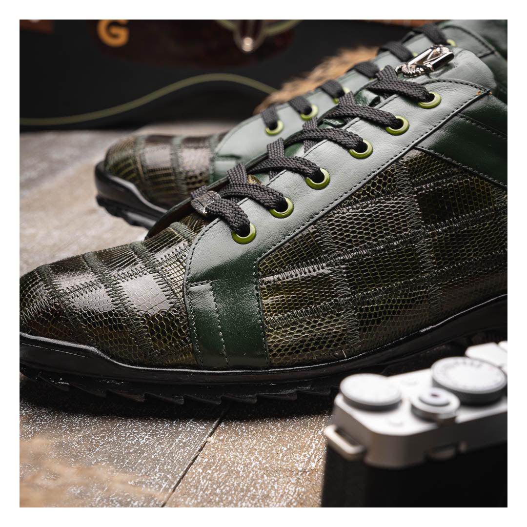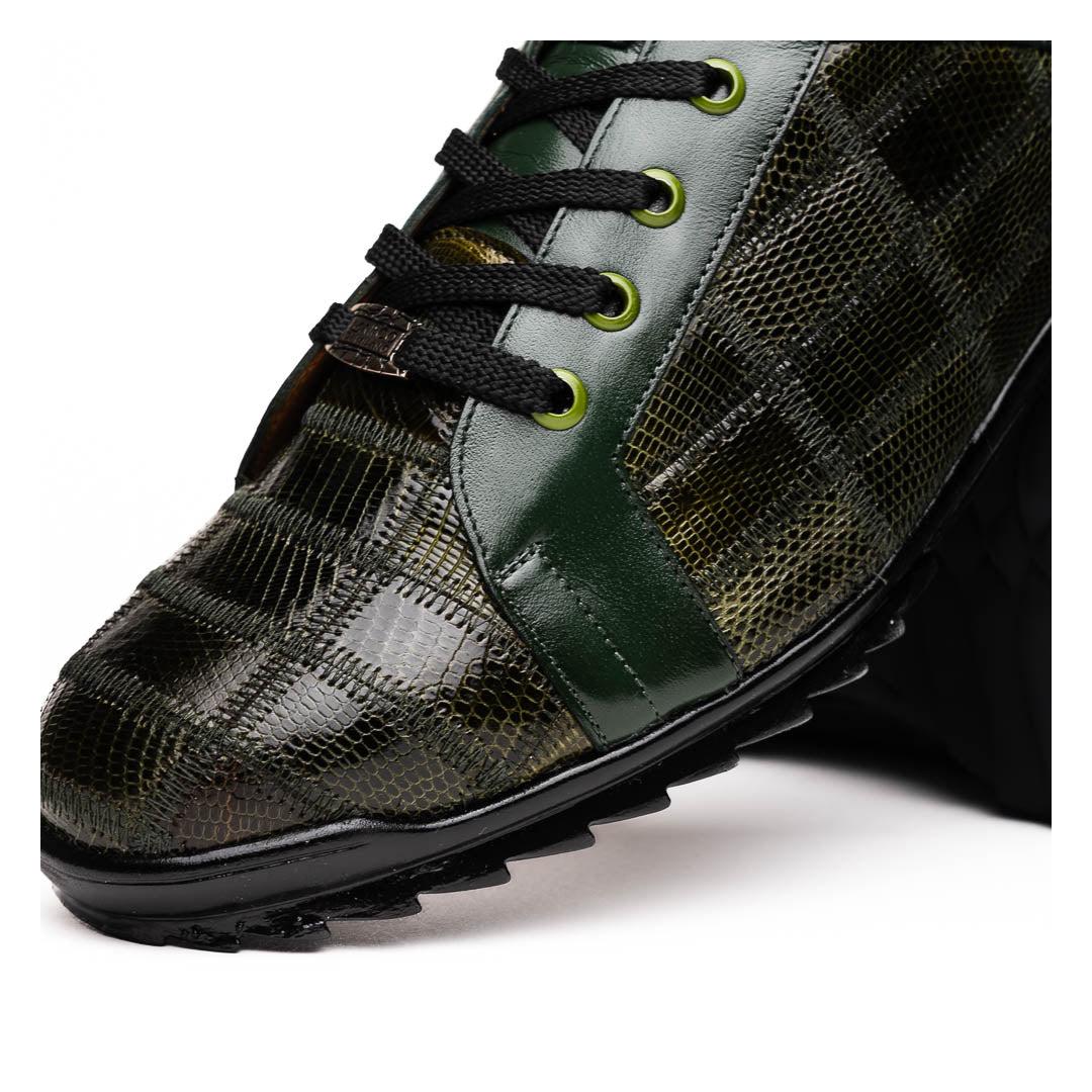 Marco Di Milano Bari Men's Shoes Green Genuine Patchwork Lizard Skin Fashion Sneakers (MDM1142)