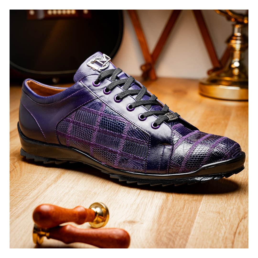 • Marco Di Milano Bari Men's Shoes Purple Genuine Patchwork Lizard Skin Fashion Sneakers (MDM1142)