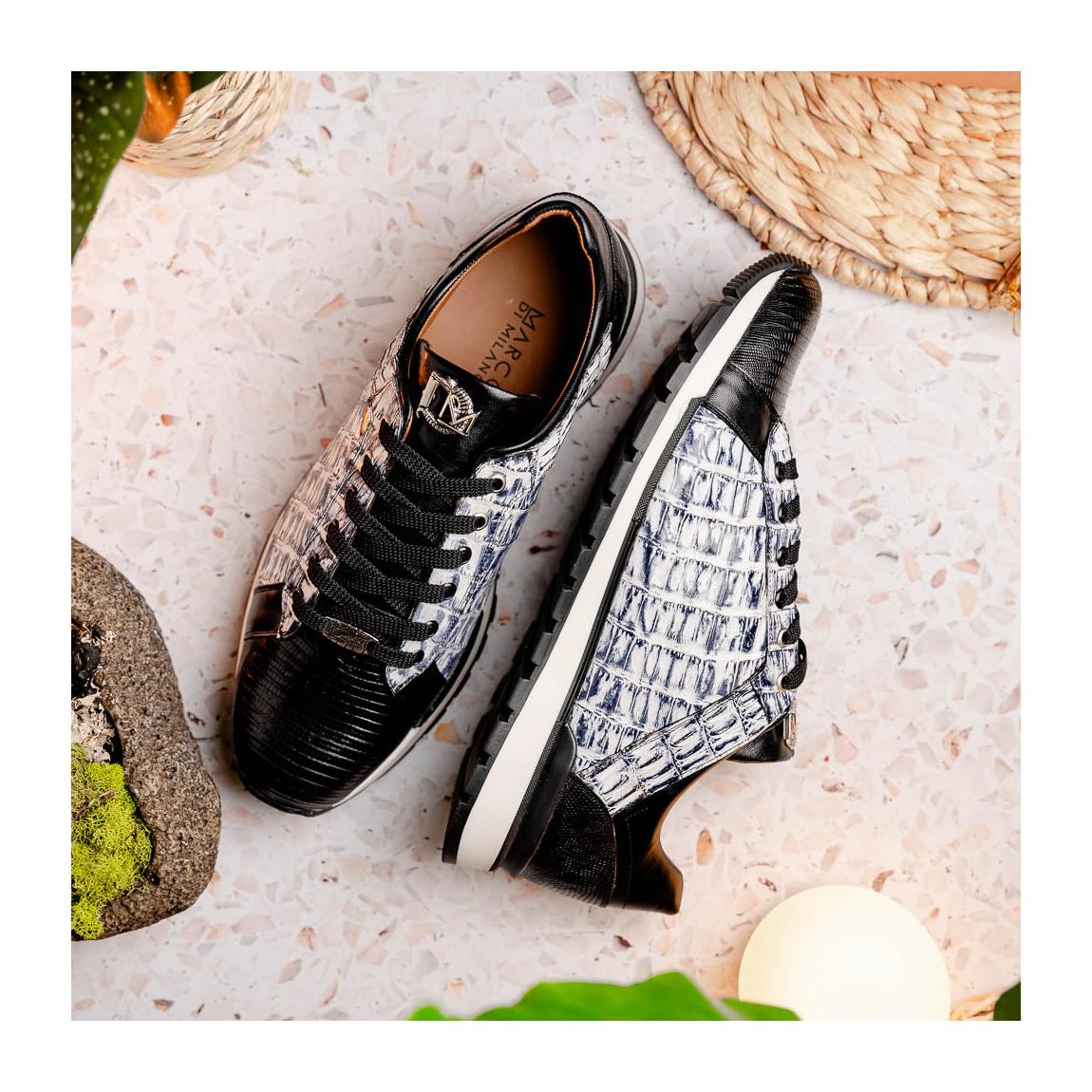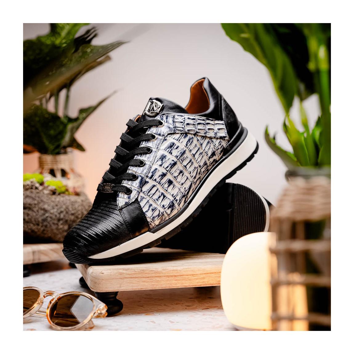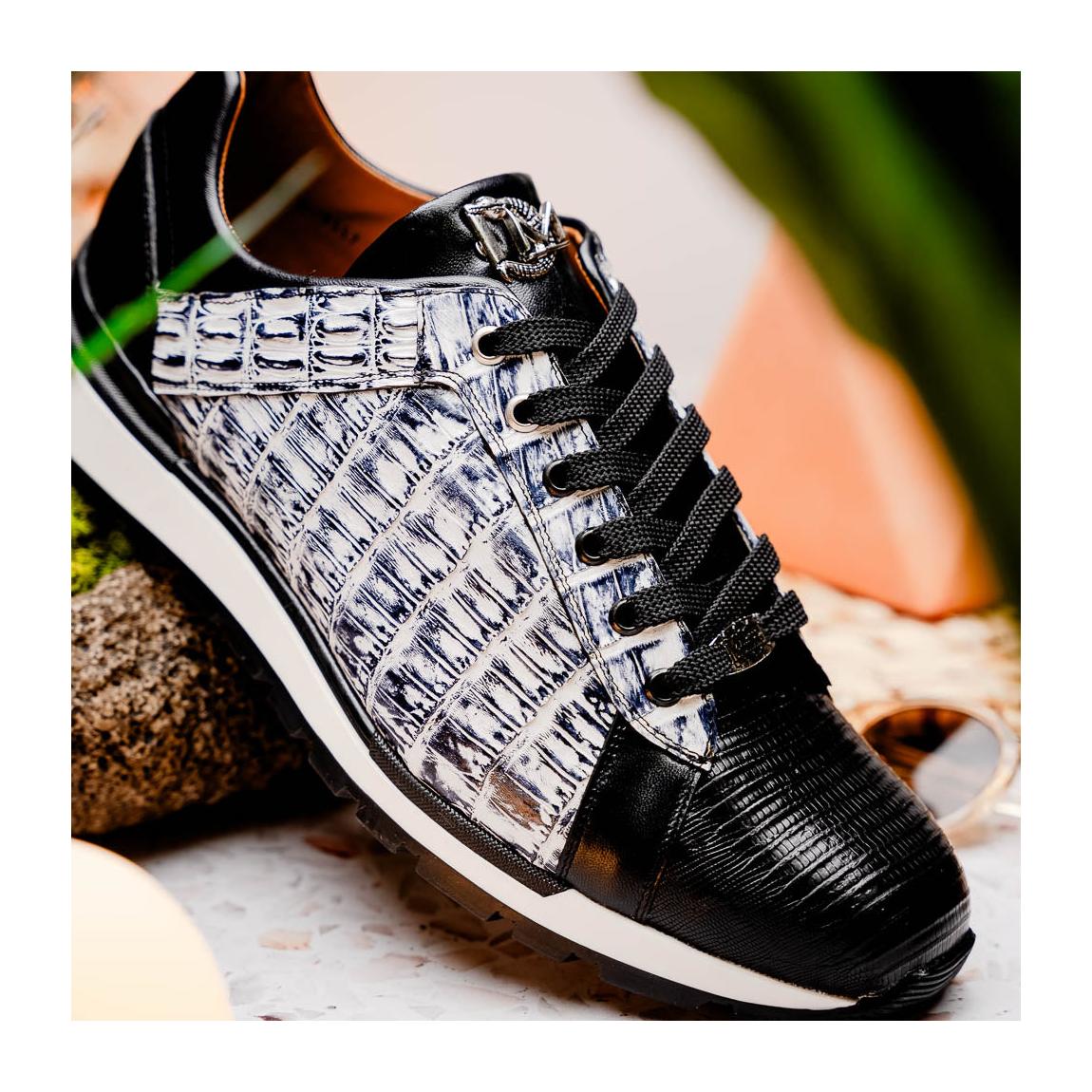 The PORTICI is our aggressive combination genuine crocodile and lizard fashion sneaker boasting a sporty casual silhouette with a two tone hand painted finish. Dress these up with your favorite jeans, slacks, or shorts for a striking look.