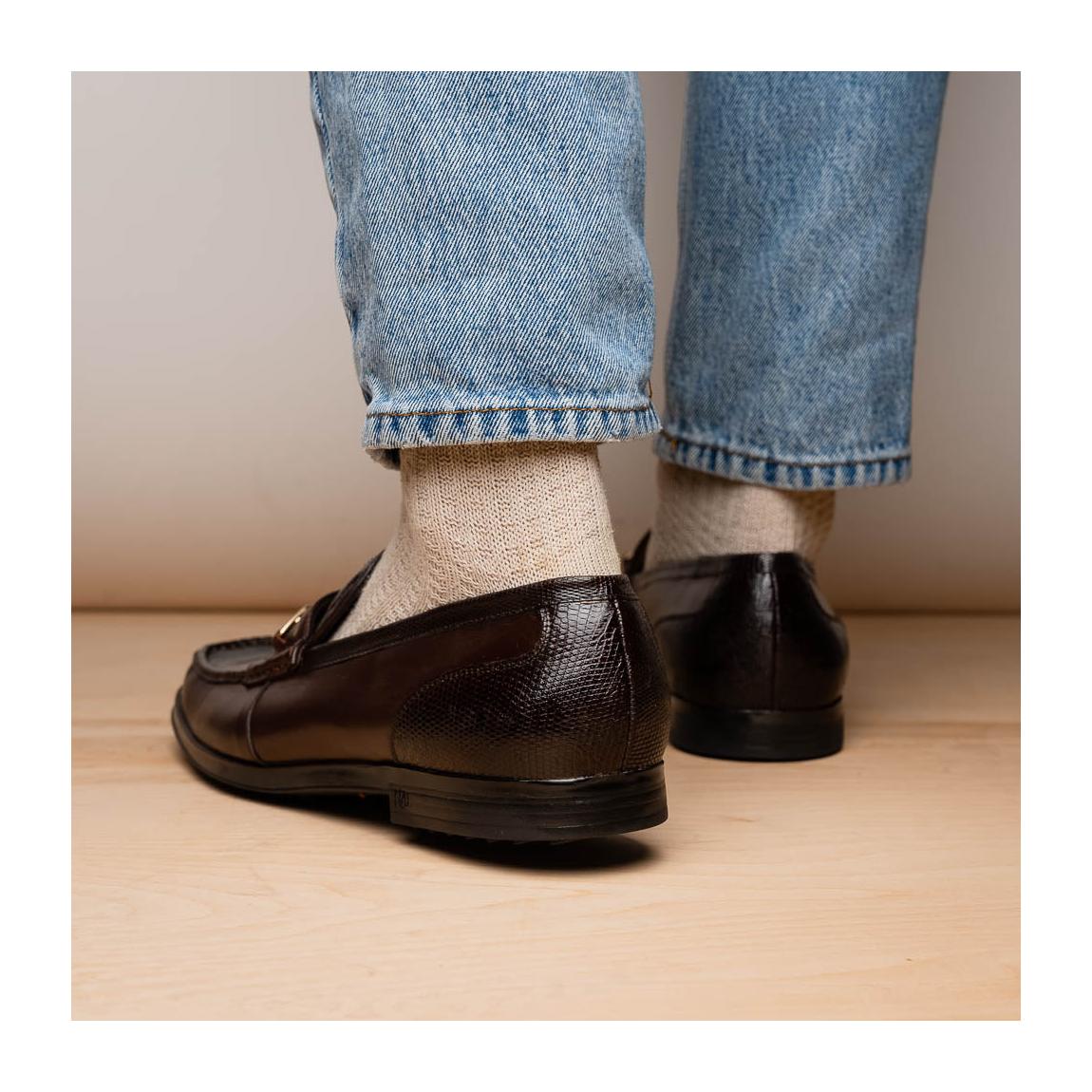 Elevate your fashion game with the RAVELLO Stylish Genuine Lizard and Calfskin Bit Loafers. Pair them with your favorite jeans or slacks for a sophisticated and stylish appearance suitable for various occasions.