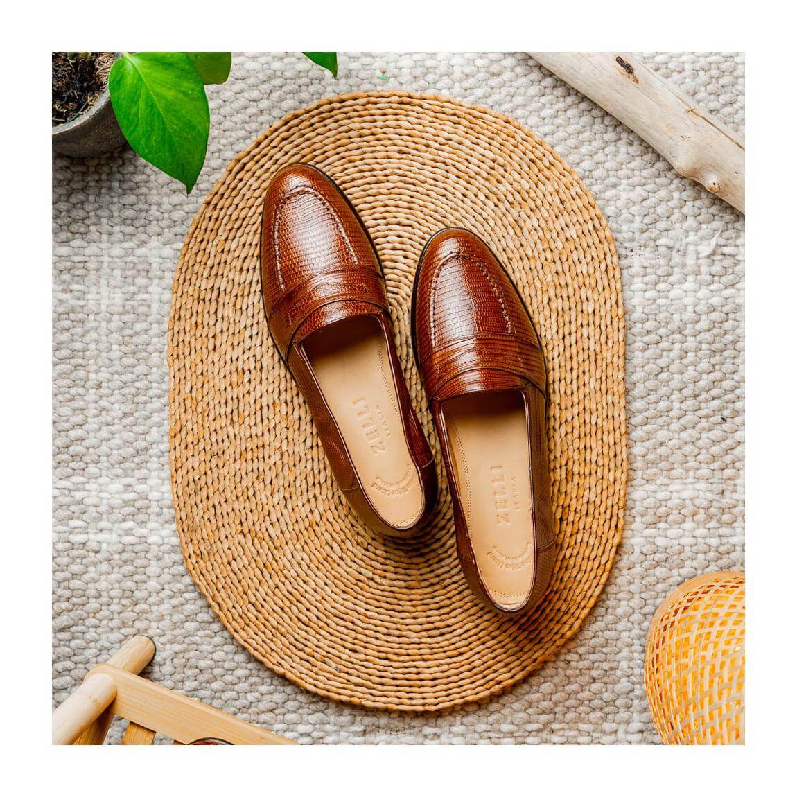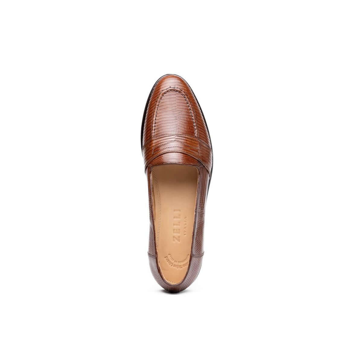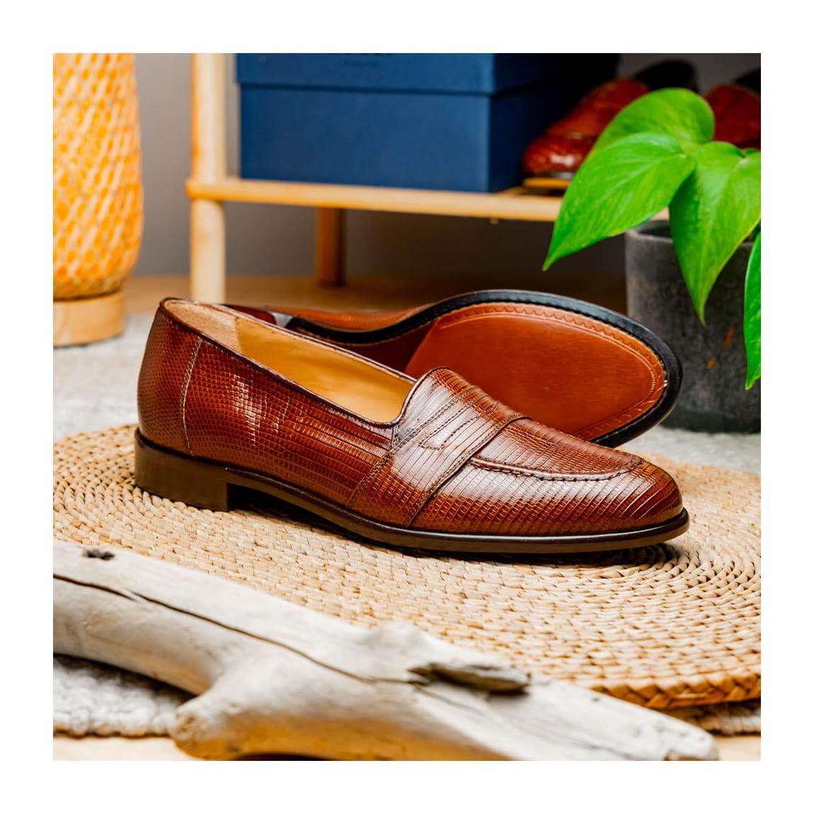 The Rossi men's shoe is a shorter vamp penny loafer in exotic Teju lizard leather. This classic style loafer makes a distinctive statement with casual or dress attire. Sleek, comfortable and with maximum flexibility, the Rossi features Zelli's Blake Canalino Stitch construction, which allows for a lightweight and durable shoe that will serve you well for years to come.
