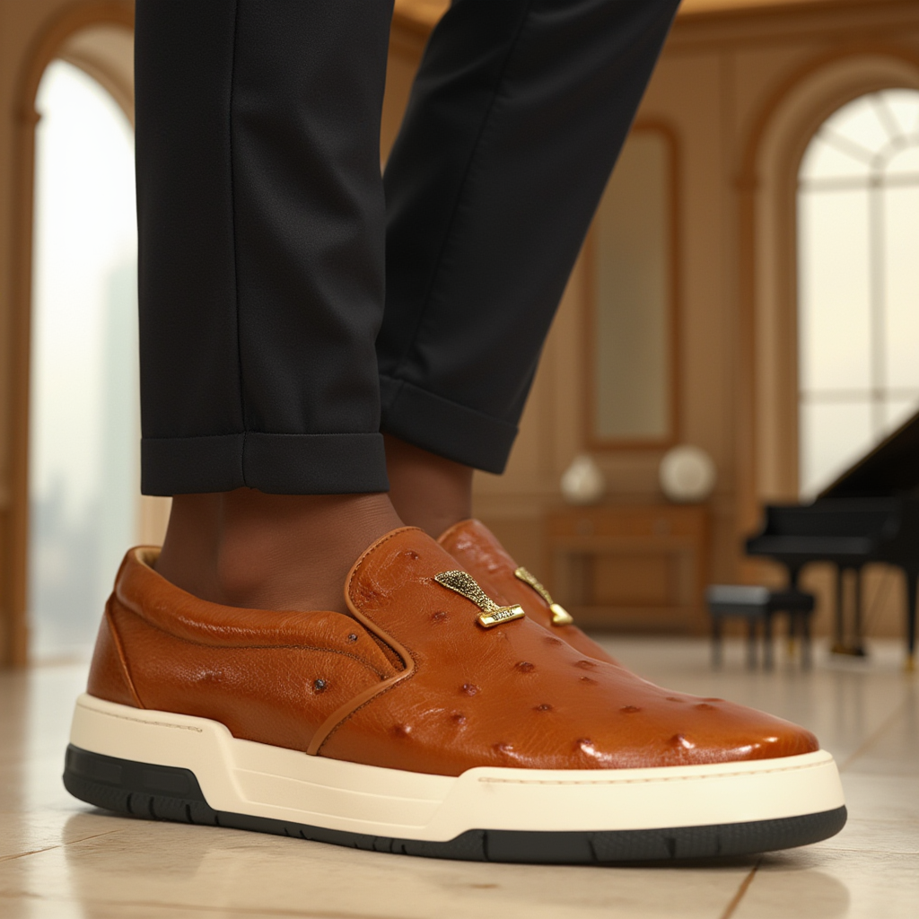 • Mauri 8419/1 Posh Men's Shoes Exotic Ostrich Slip-On Sneakers (MA5653)