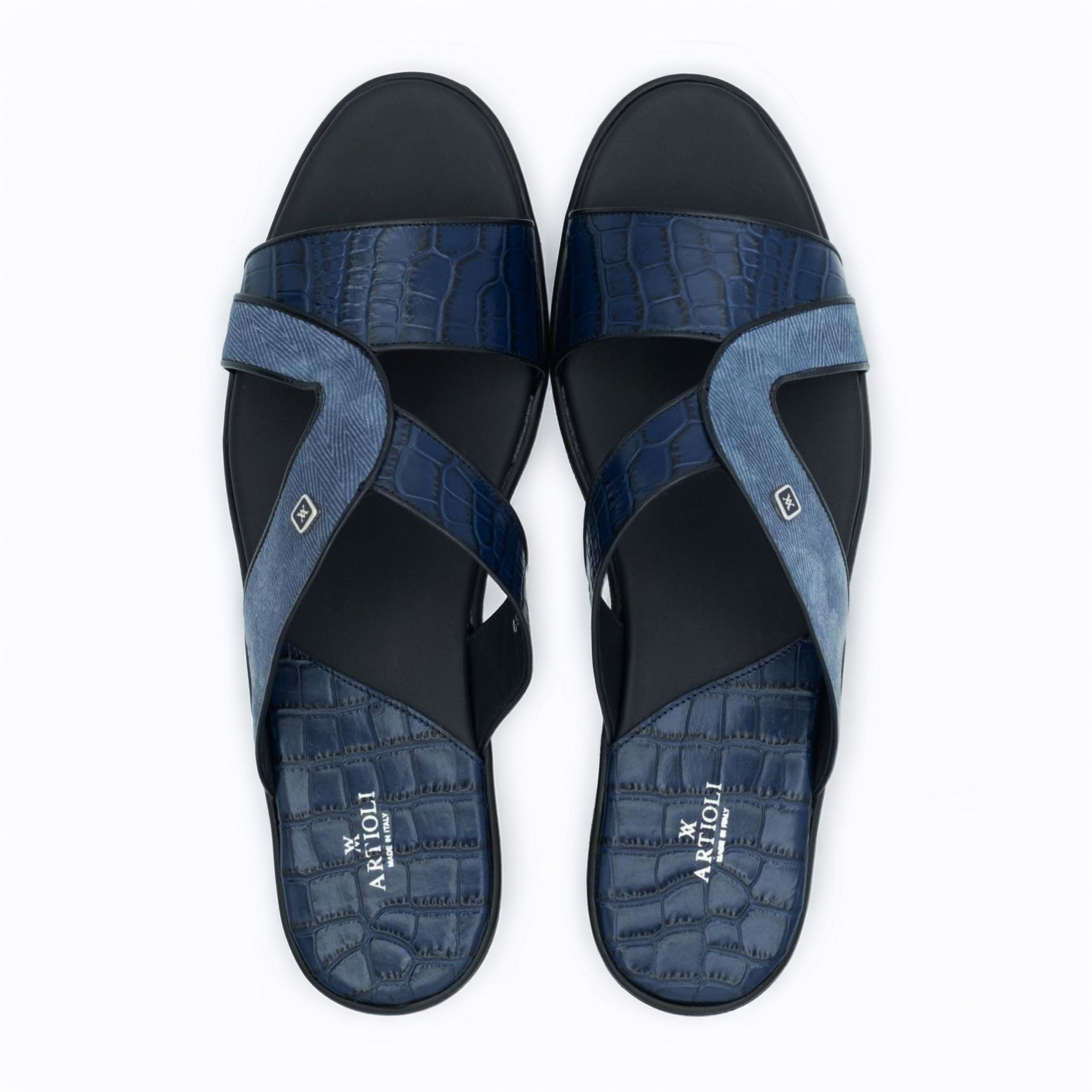 • Artioli Gela Men's Shoes Exotic Crocodile Skin / Suede Leather Slip-On Sandal (ART1173)