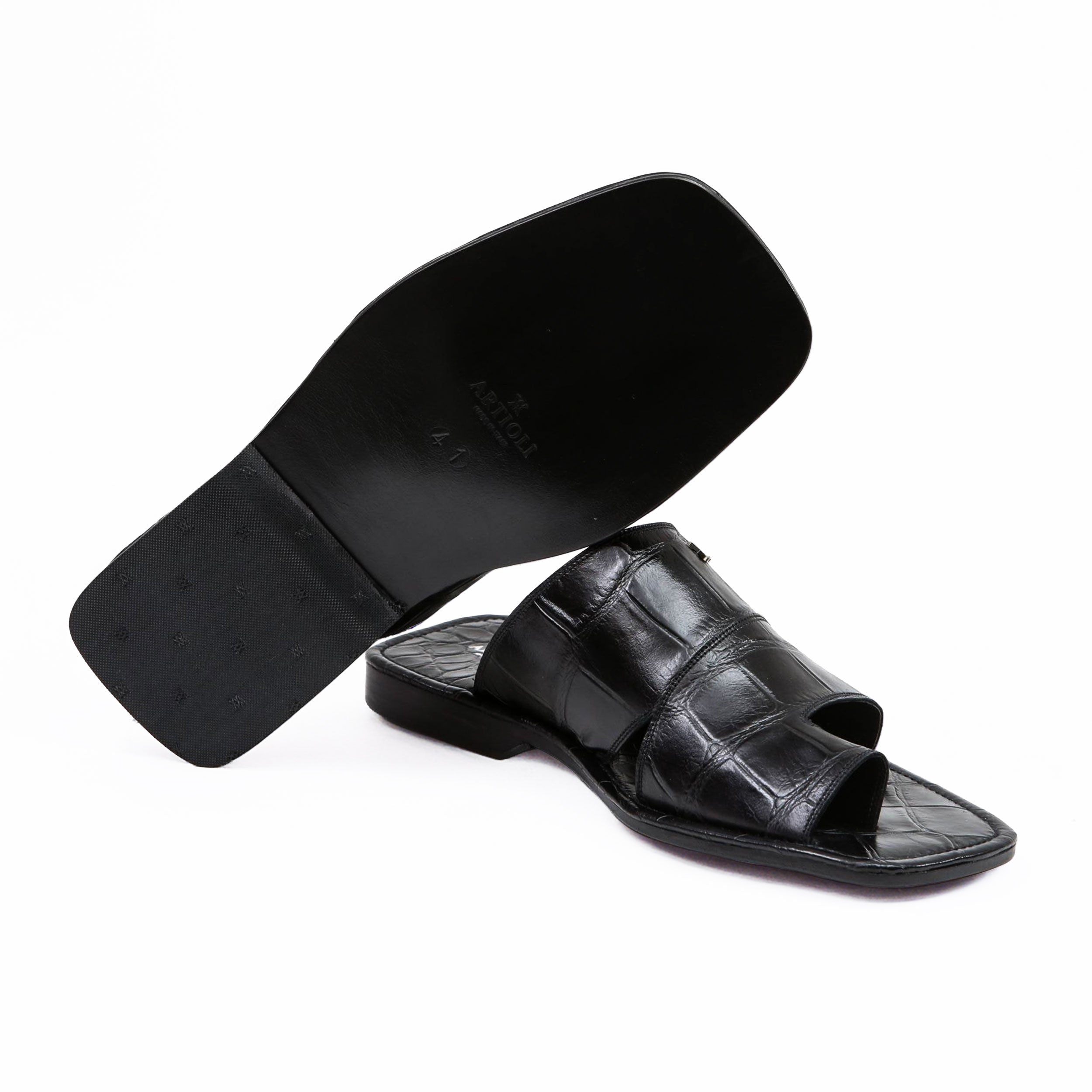 Artioli Pantelleria Men's Luxury Italian Shoes Alligator Print Leather Slip-On Sandal (ART1141)