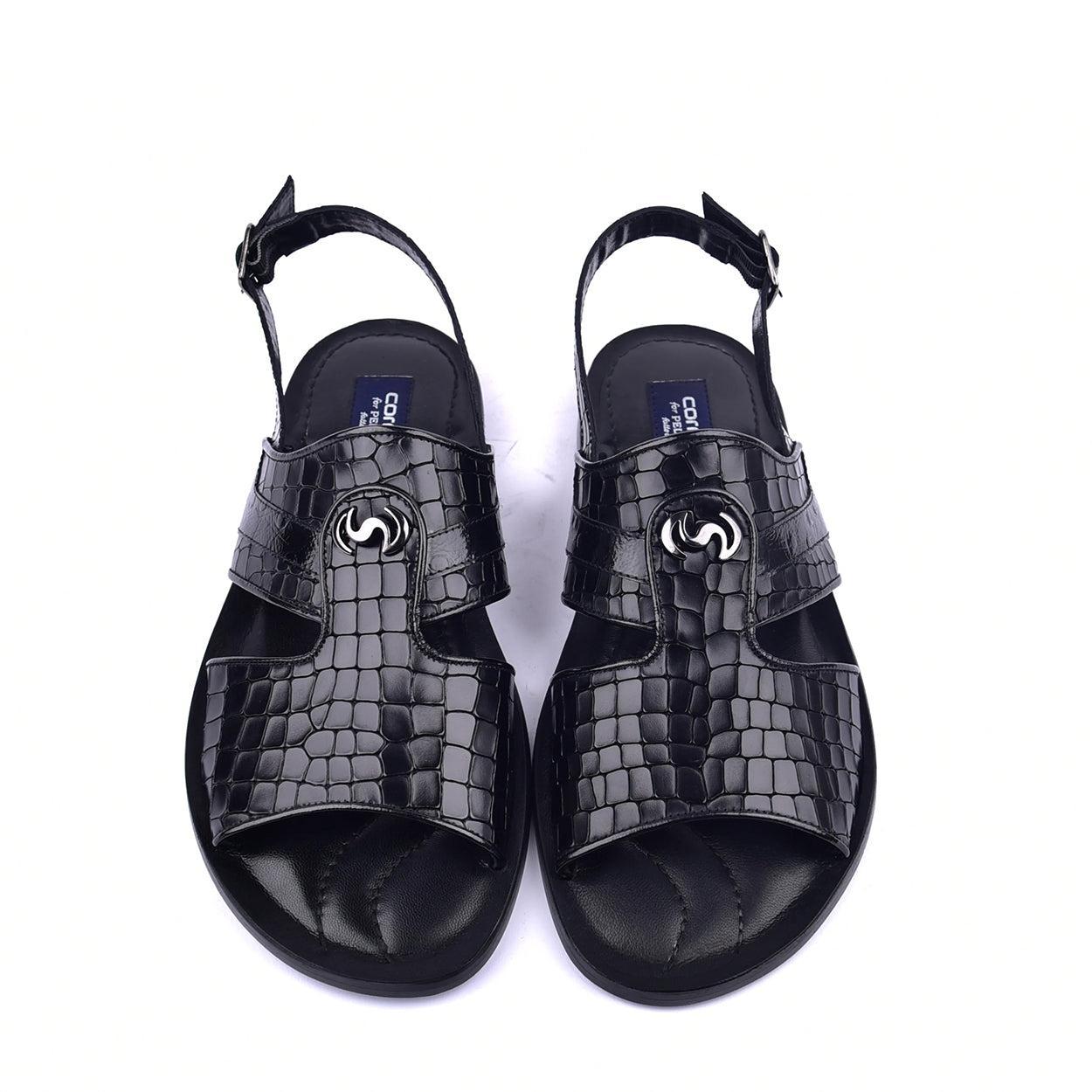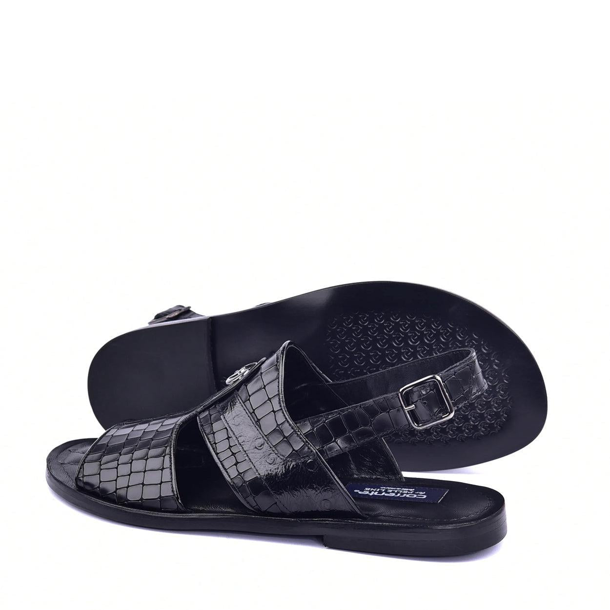 Corrente C0074 5829S Men's Shoes Croco Print Calf-Skin Leather & Exotic Ostrich Skin Sandal (CRT1324)