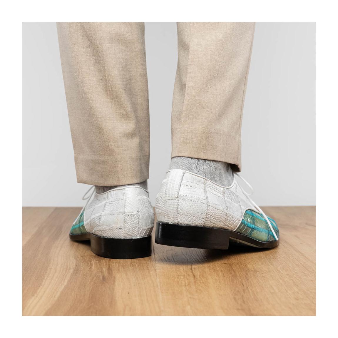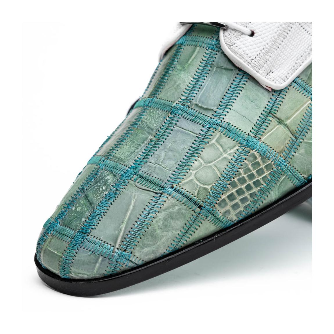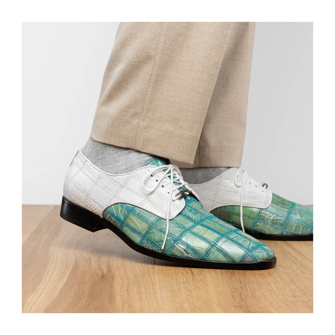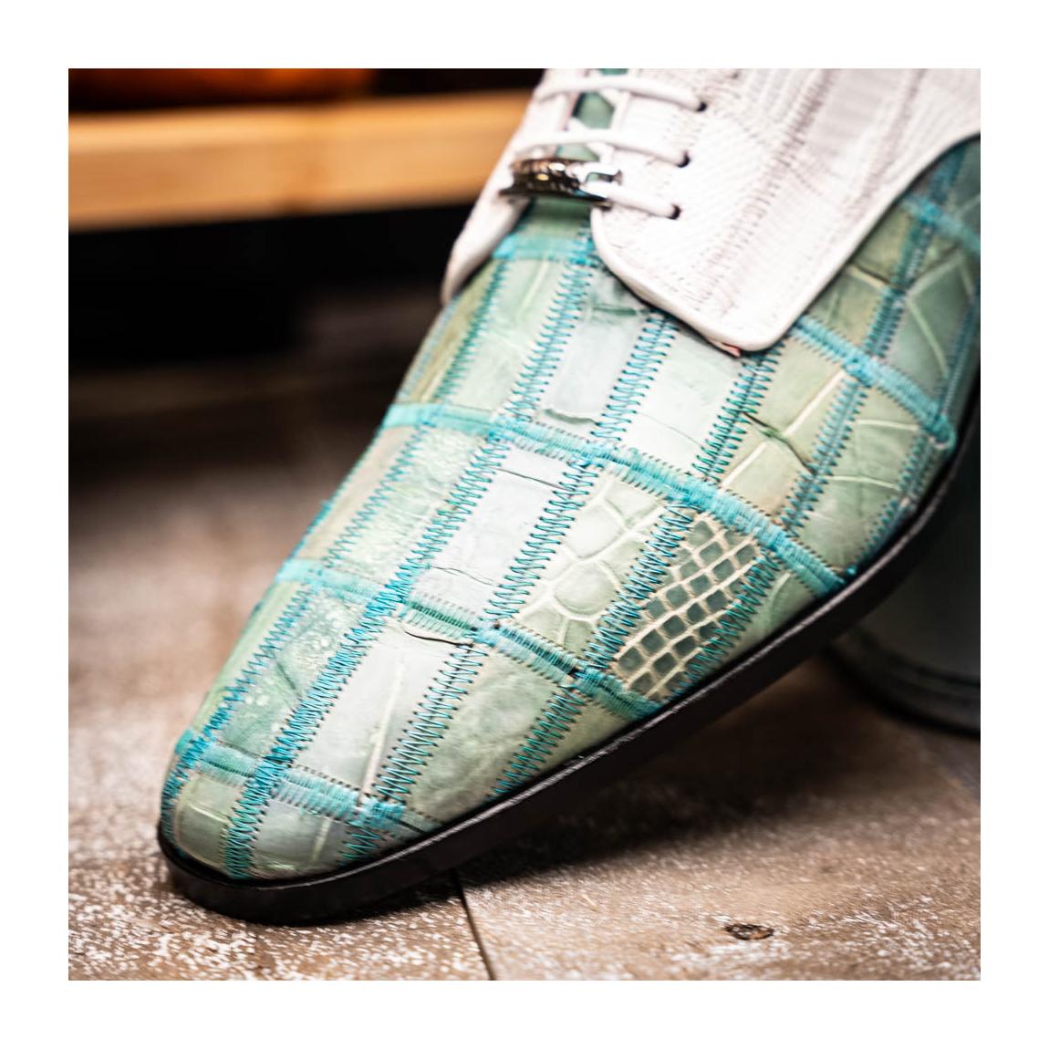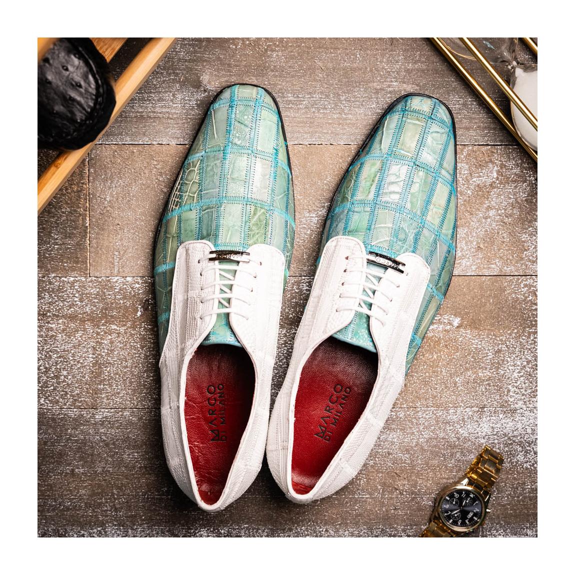 Marco Di Milano Pissa Men's Shoes Turquoise & White Genuine Caiman Crocodile / Lizard Patchwork Derby (MDM1209)