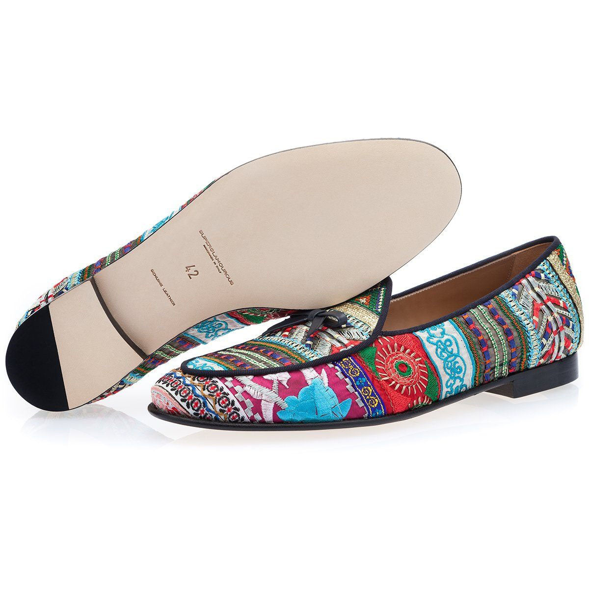 SUPERGLAMOUROUS Tangerine 1 Panama Men's Shoes Embroidered Canvas Belgian Loafer (SPGM1346)