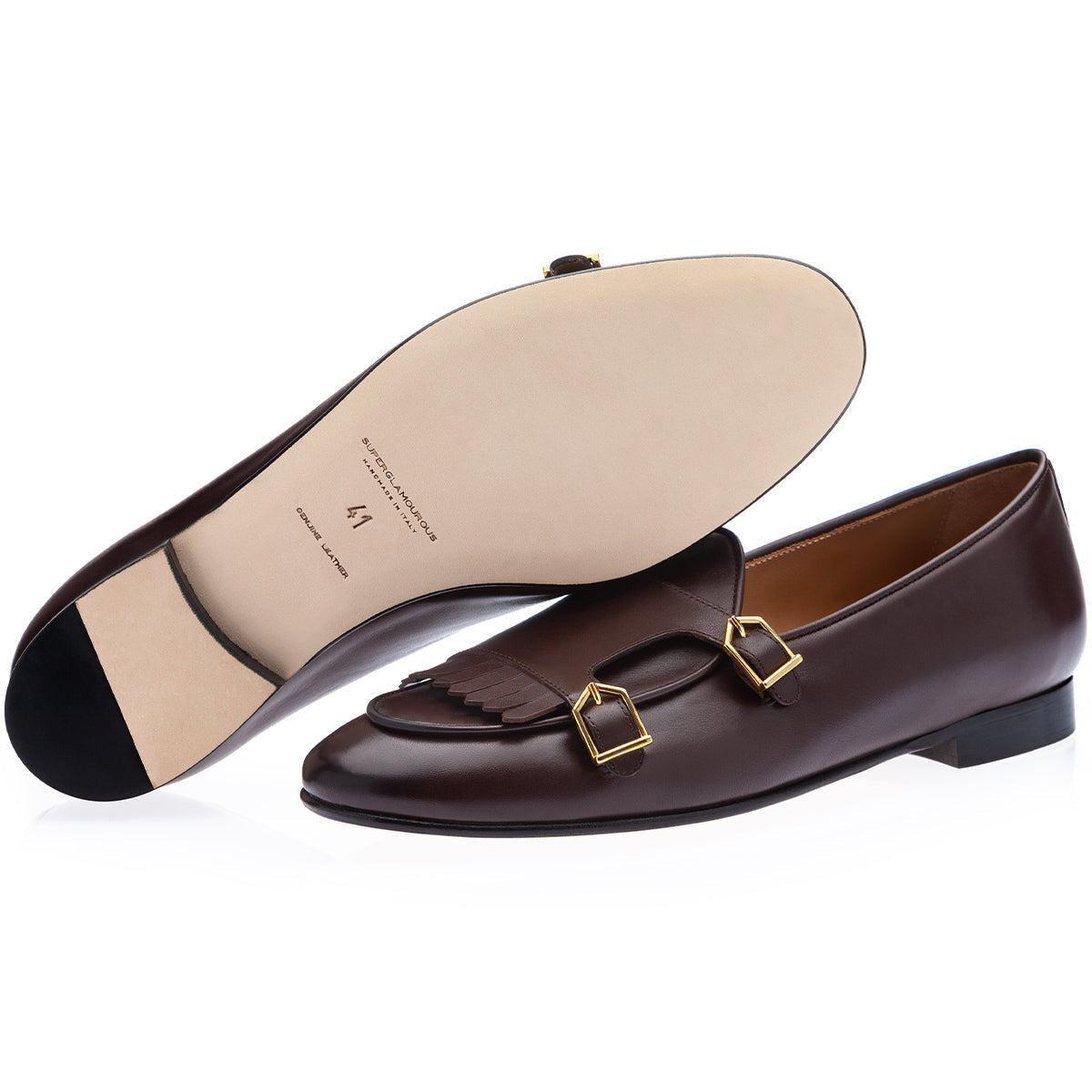 SUPERGLAMOUROUS TANGERINE 7.1 Men's Shoes Cocoa Nappa Leather Monk Belgian Loafers (SPGM1164)