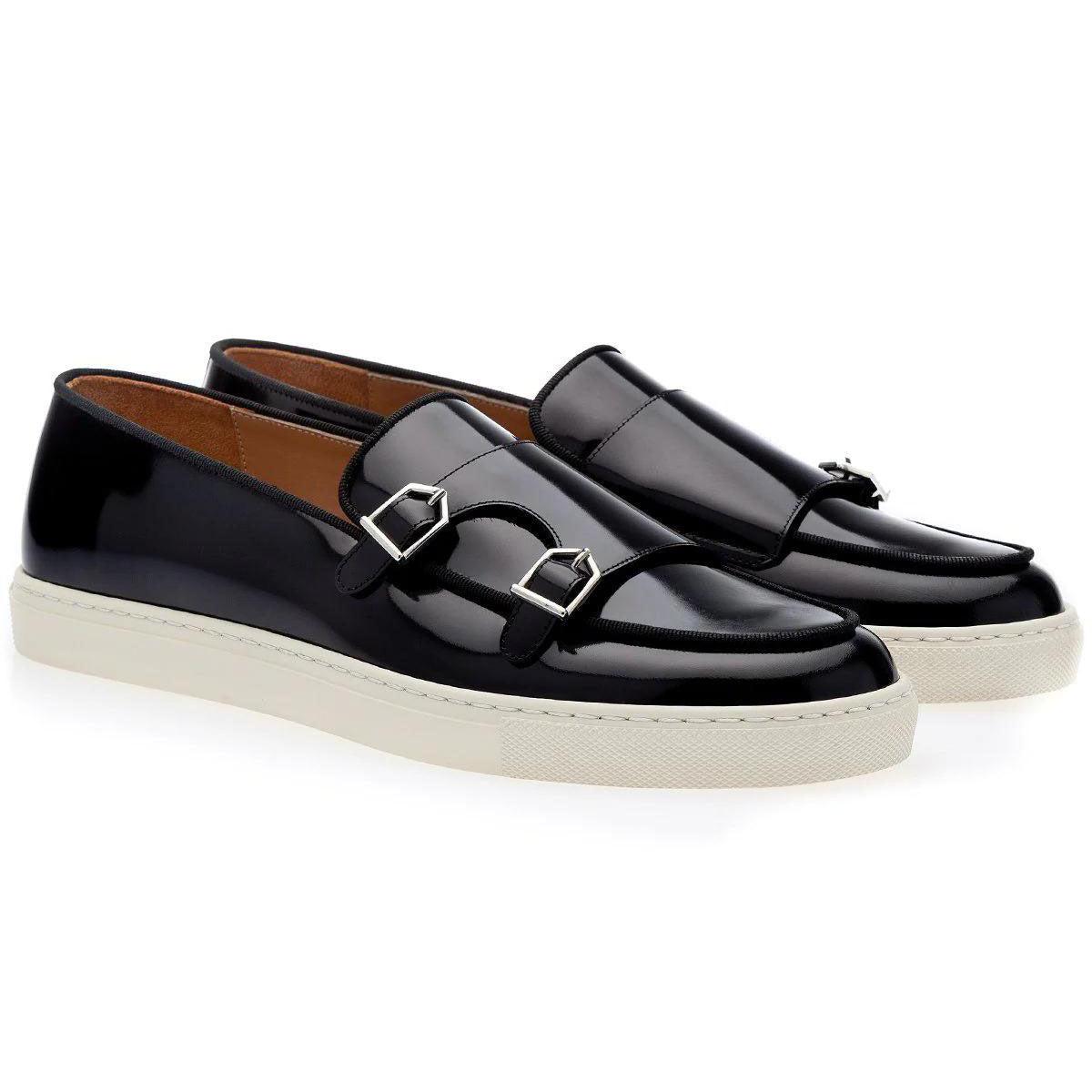 • Polished Calf-Skin Double-Monk with Silver Buckles