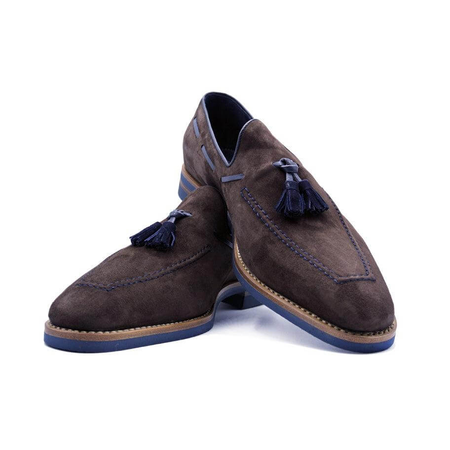 • Zelli Italia Carmen Men's Shoes Brown Goat-Skin Suede & Crocodile Skin Tassel Loafer (ZEL1029)