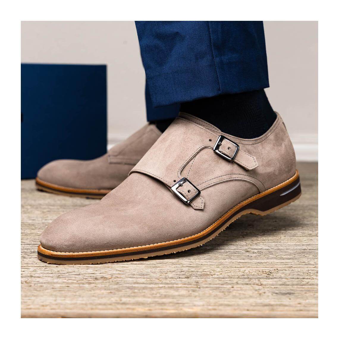 • Zelli Italia Legerra Men's Shoes Sand Goat-Skin Suede Monk-Strap (ZEL1073)