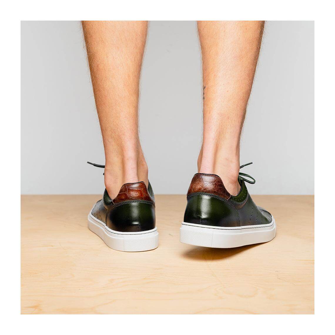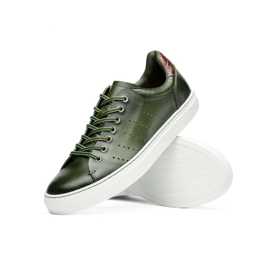 • Zelli Italia Russo Men's Shoes Olive Burnished Calf-Skin Leather Sneaker (ZEL1050)