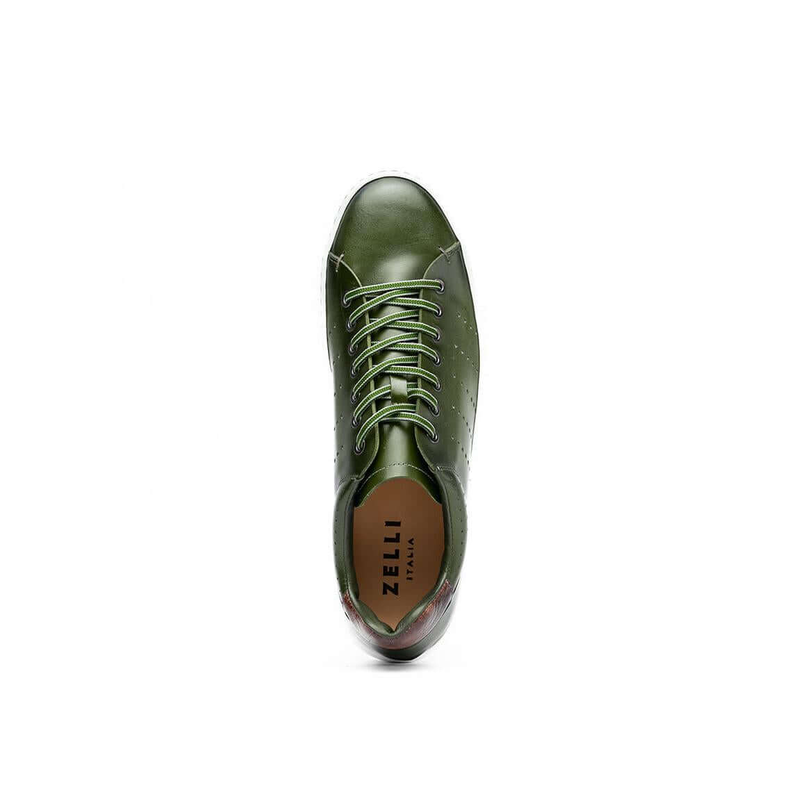 Zelli Italia Russo Men's Shoes Olive Burnished Calf-Skin Leather Sneaker (ZEL1050)