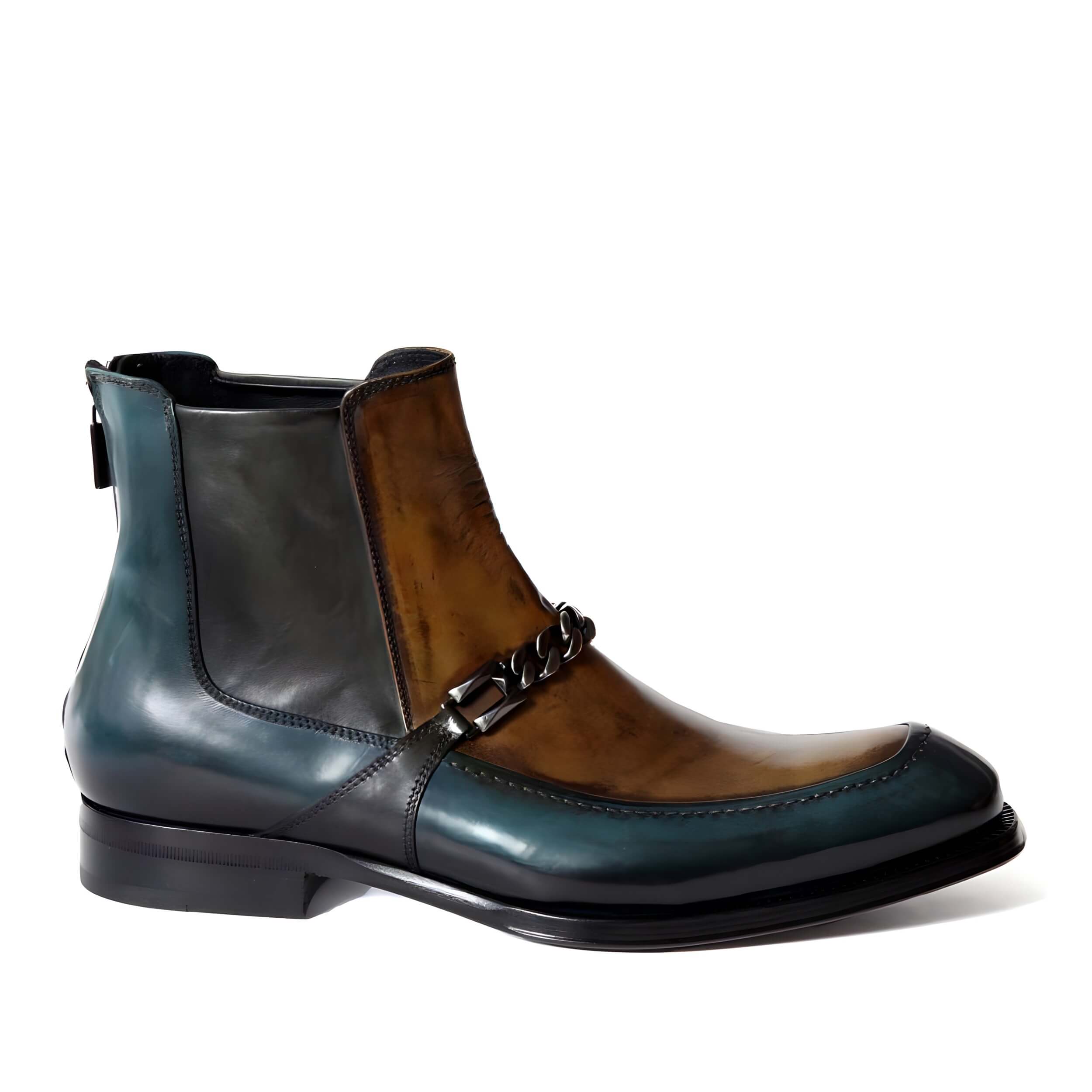 • Jo Ghost 4749 Men's Shoes Turquoise, Cognac & Gray Calf-Skin Leather Ankle Boots (JG5356)