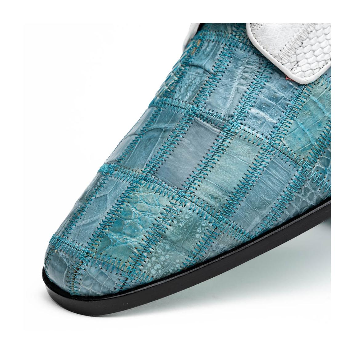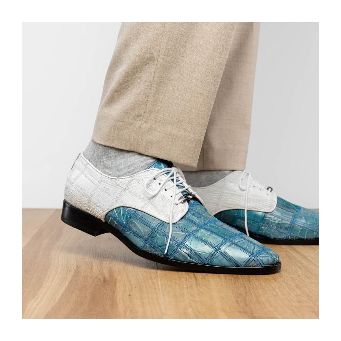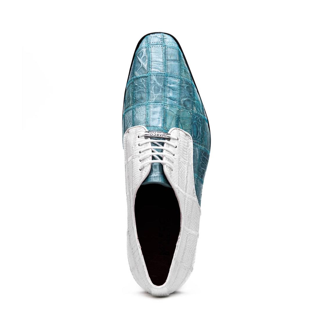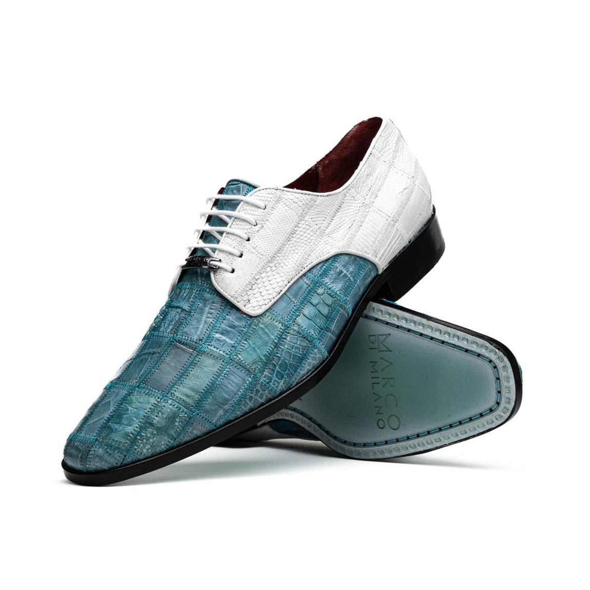 Marco Di Milano Pissa Men's Shoes Aqua & White Genuine Caiman Crocodile / Lizard Patchwork Derby (MDM1209)