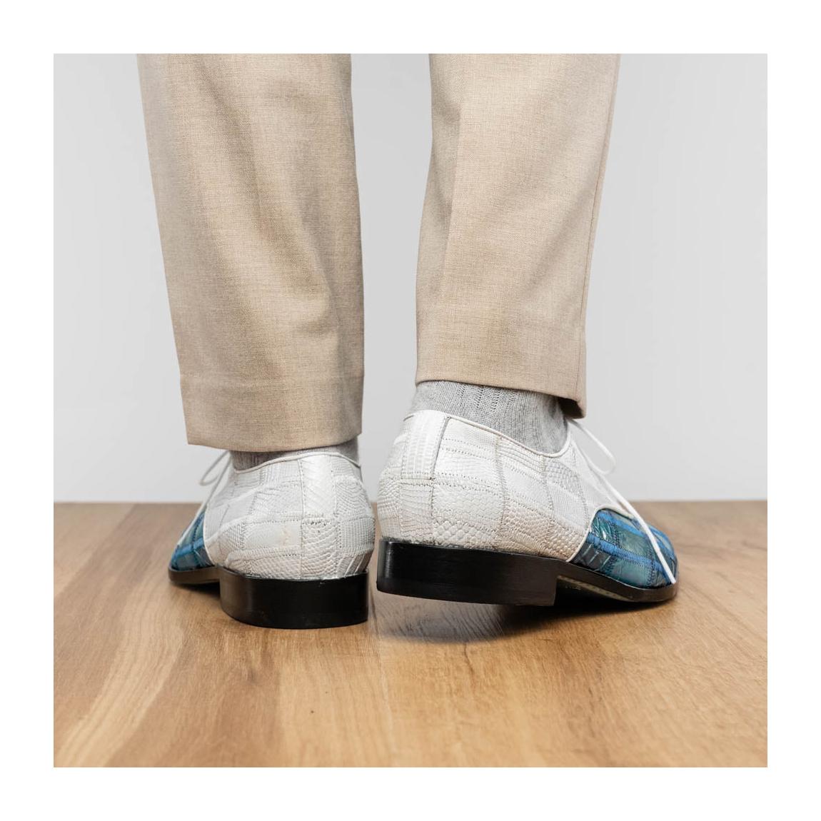 • Marco Di Milano Pissa Men's Shoes Aqua & White Genuine Caiman Crocodile / Lizard Patchwork Derby (MDM1209)
