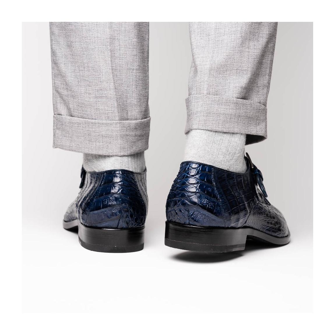Marco Di Milano Rovigo Men's Shoes Navy Exotic Crocodile Single Monk Strap (MDM1126)