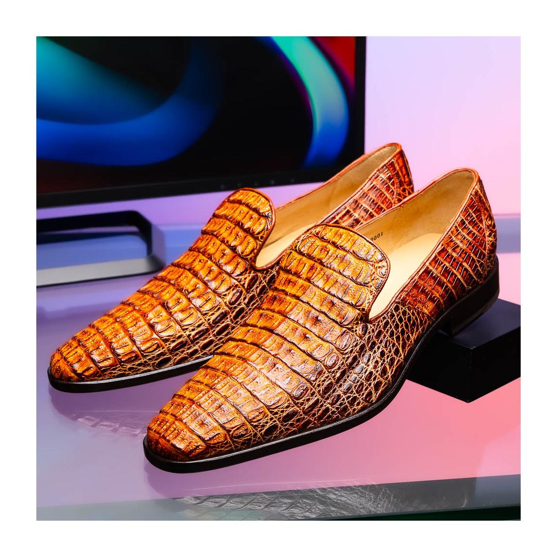 Marco Di Milano Trento Men's Shoes Cognac Genuine Caiman Crocodile Slip-On Loafers (MDM1115)