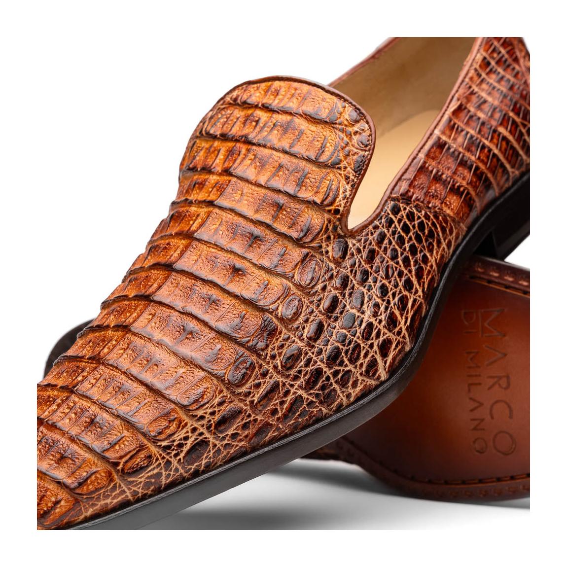 • Marco Di Milano Trento Men's Shoes Cognac Genuine Caiman Crocodile Slip-On Loafers (MDM1115)