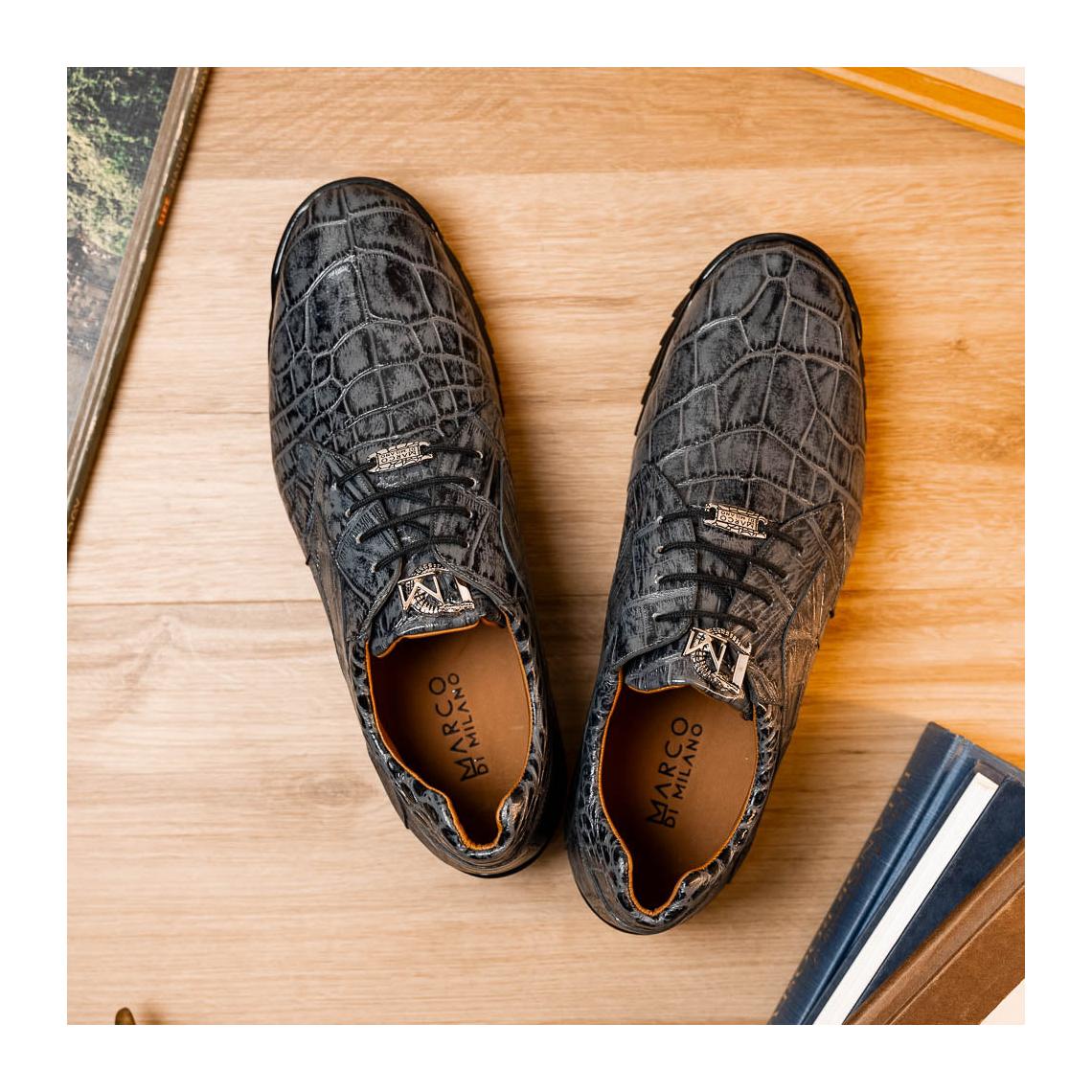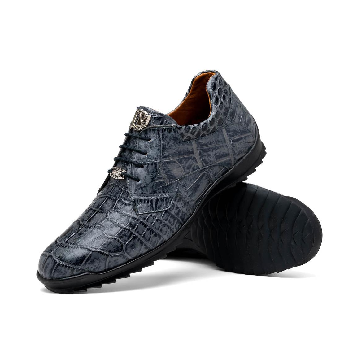 Marco Di Milano Vulcan Men's Shoes Gray Exotic Alligator Derby Sneakers (MDM1195)