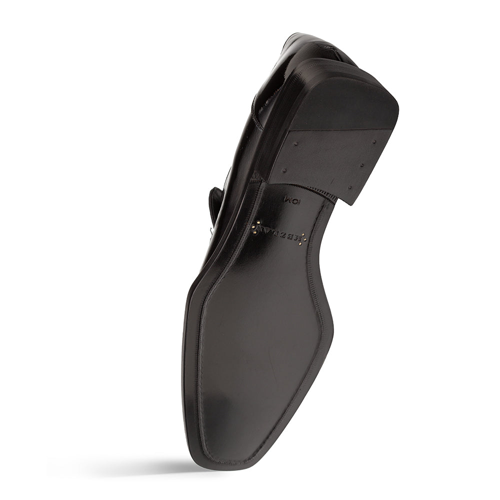 FIT ADVISORY: If you tend to run between sizes, then we advise that you purchase one-half size smaller in this style. This style runs slightly generous in the fit. With an aggressive fashion silhouette, the Accola shines through in glistening textured patent leather, a classic ornament bit accent, and a broad chiseled toe box that says "cutting edge"!