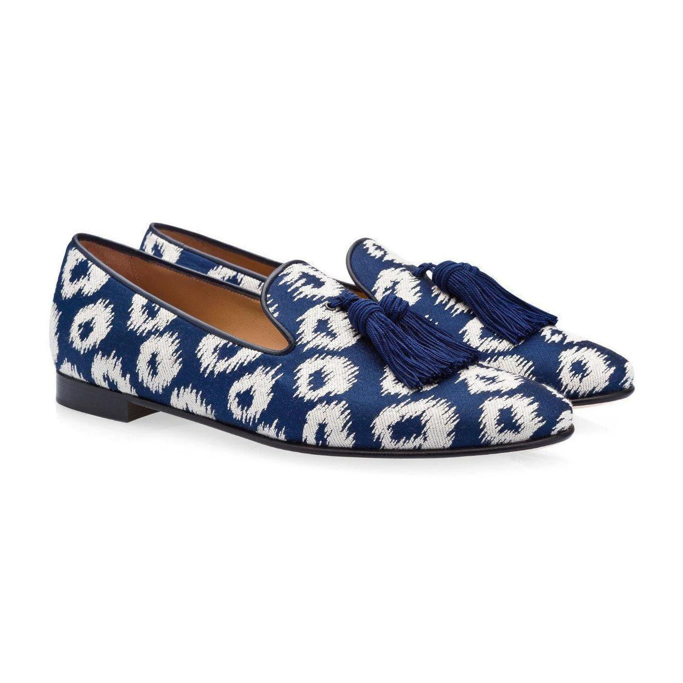 - SUPERGLAMOUROUS Louis Rivareno Men's Shoes Navy & Cream Jacquard Canvas Tassels Loafers (SPGM1003)